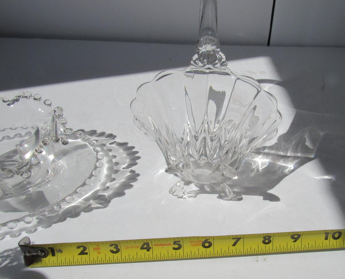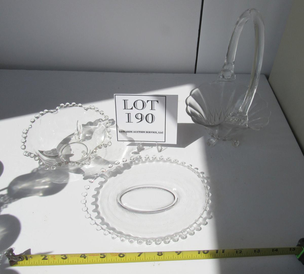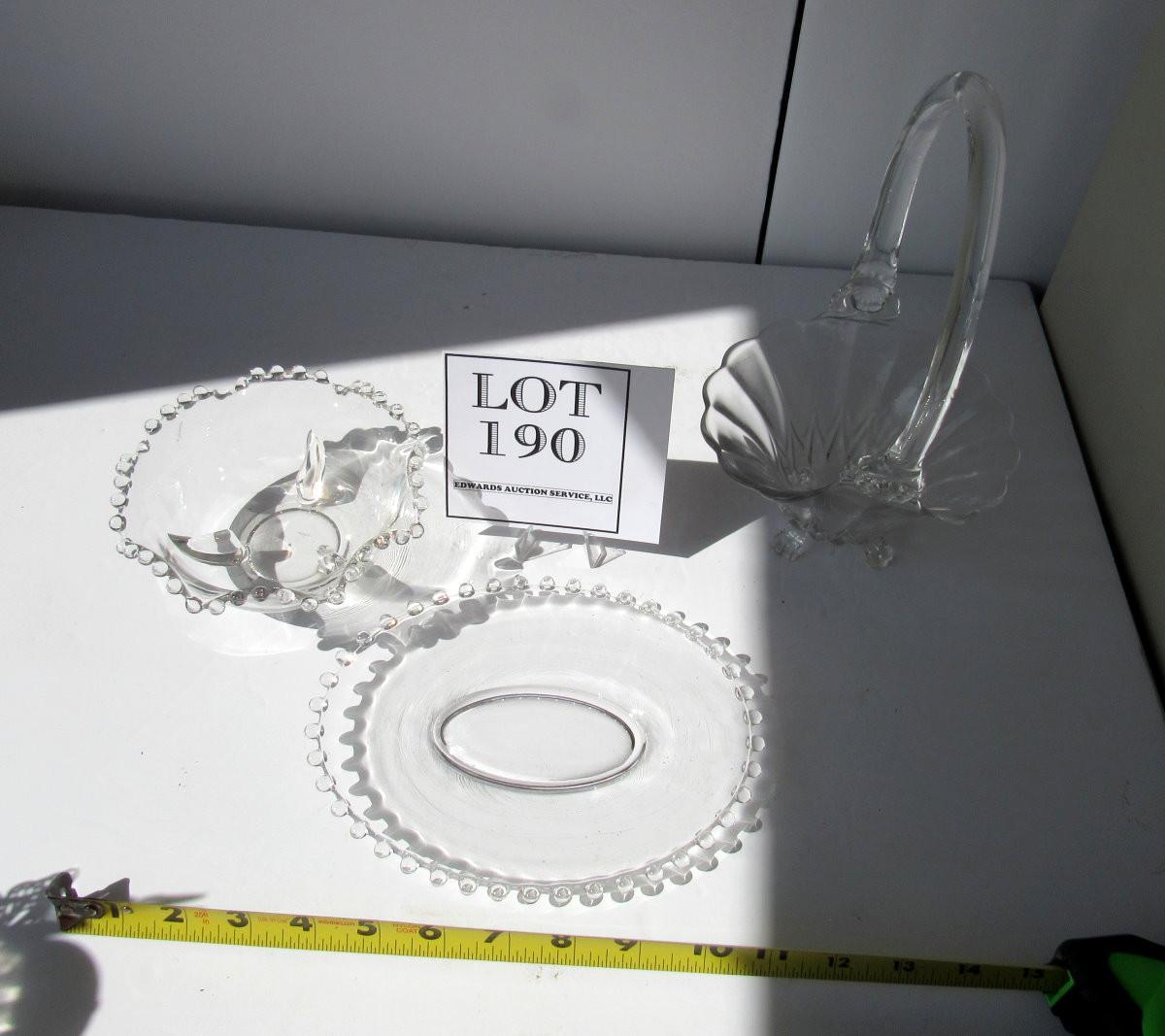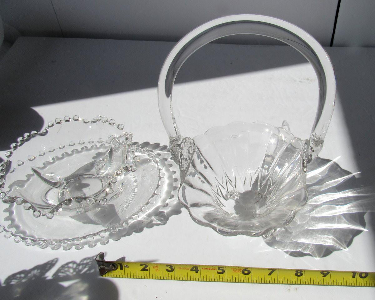 Imperial Candlewick Ruffled Icer Bowl (HTF), Gravy Boat Liner (No Boat) and New Martinsville Janice Glass Basket