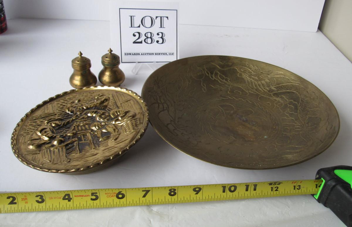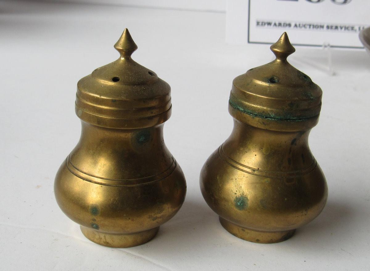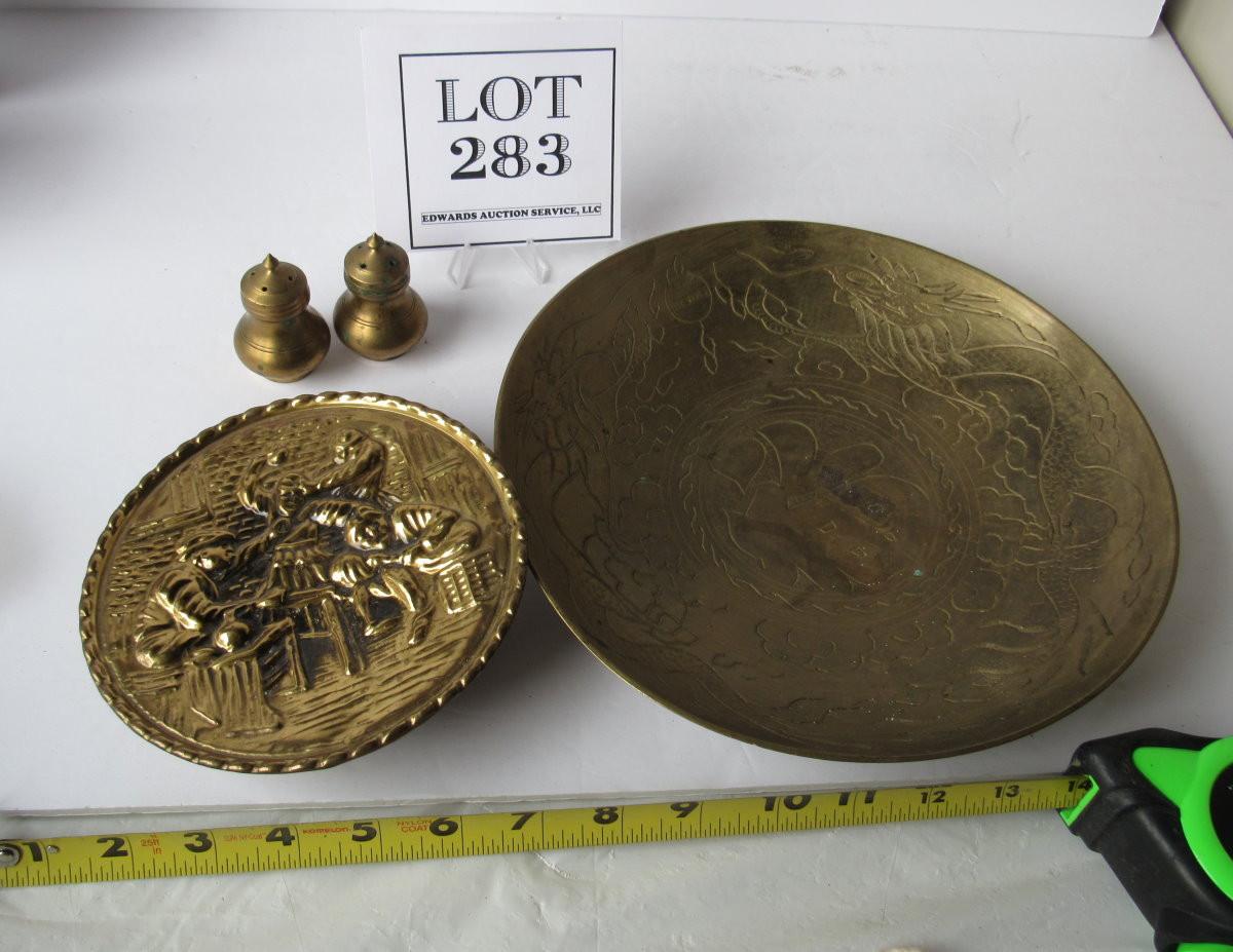 Vintage Brass Lot Wall Pocket, Bowl, Shakers