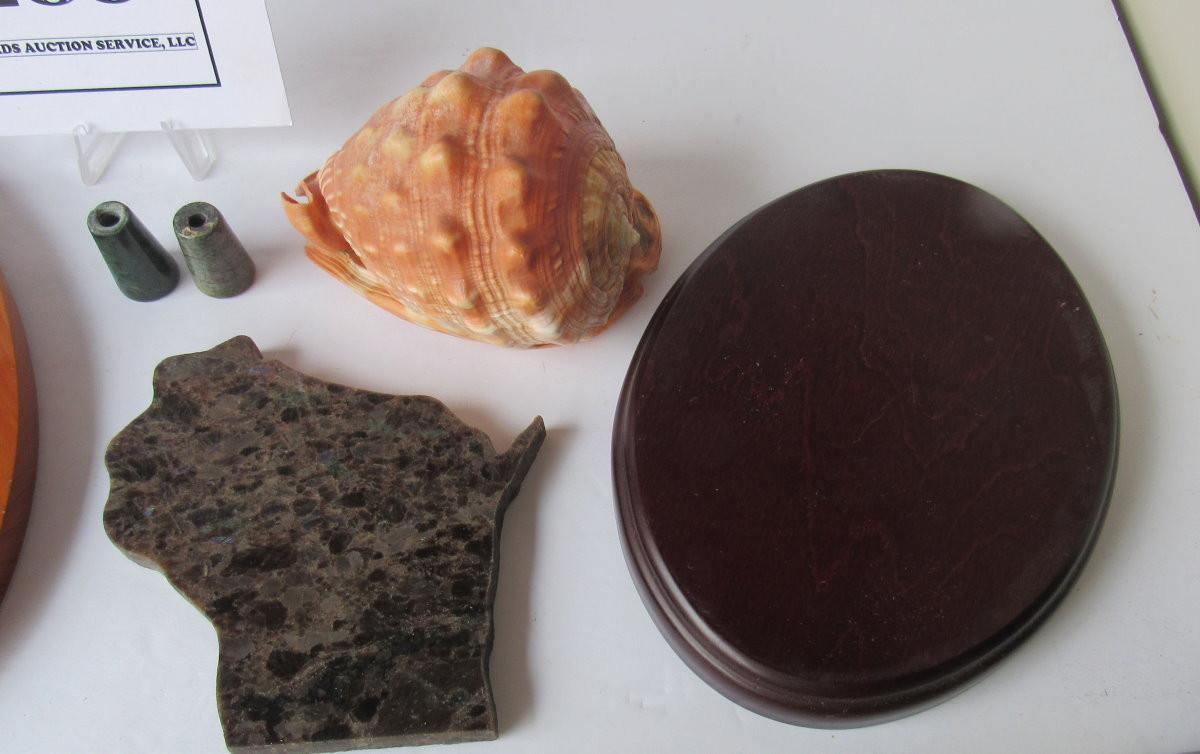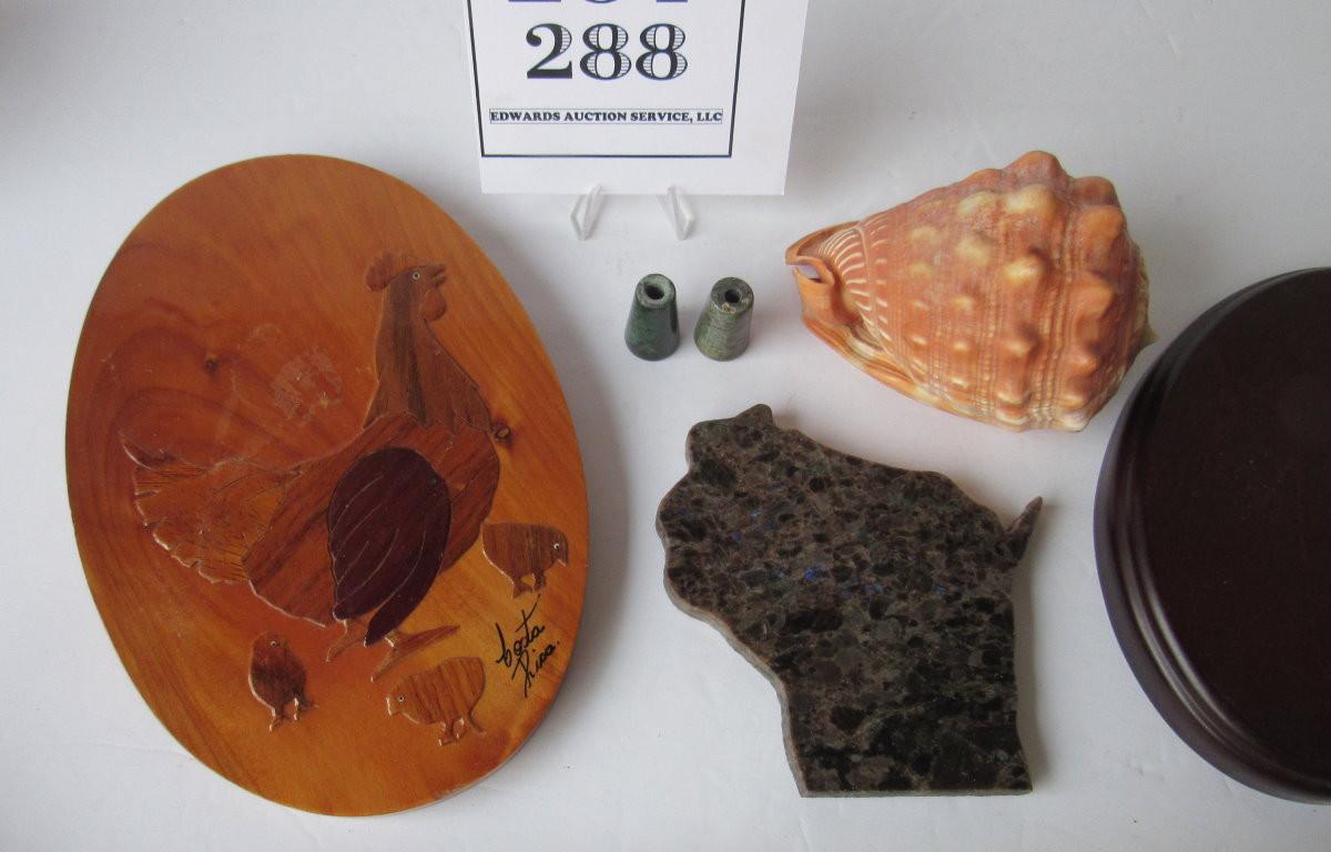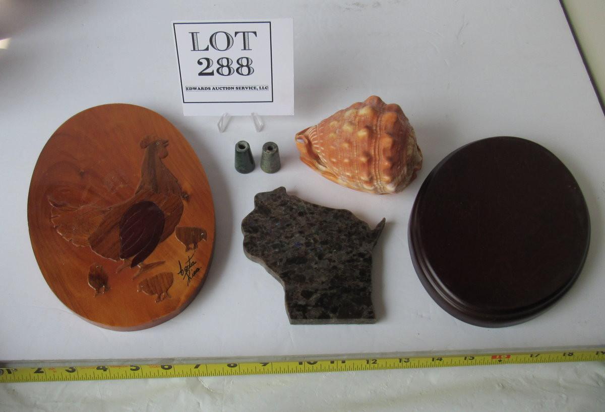 Granite WI Trivet, Granite Beads, Wood Plaque and Wood Figurine Base