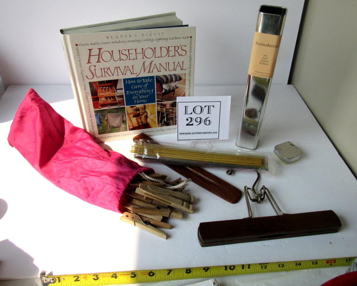 Old Closepins, Hanger, Nice Scent Incense Sticks, Householders Survivor Manual