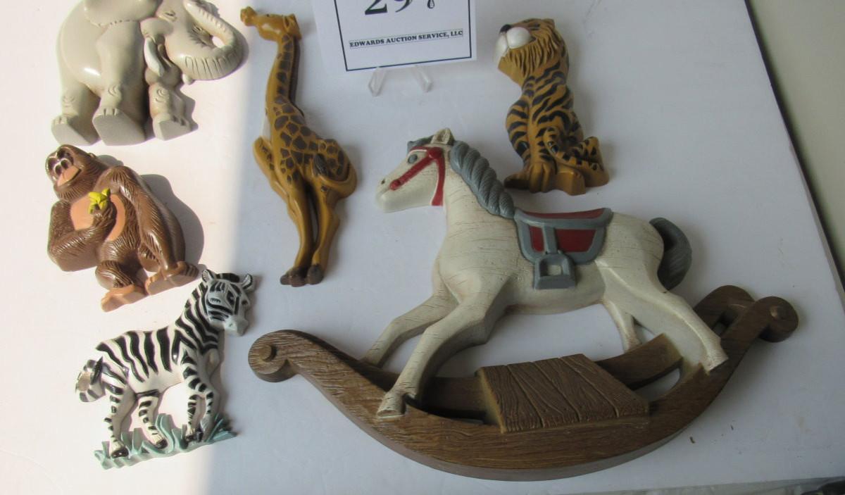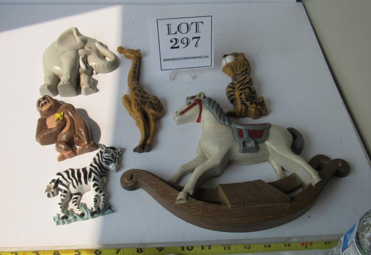 Cute Older Wall Decor, Burwood Plastic Animals Lot