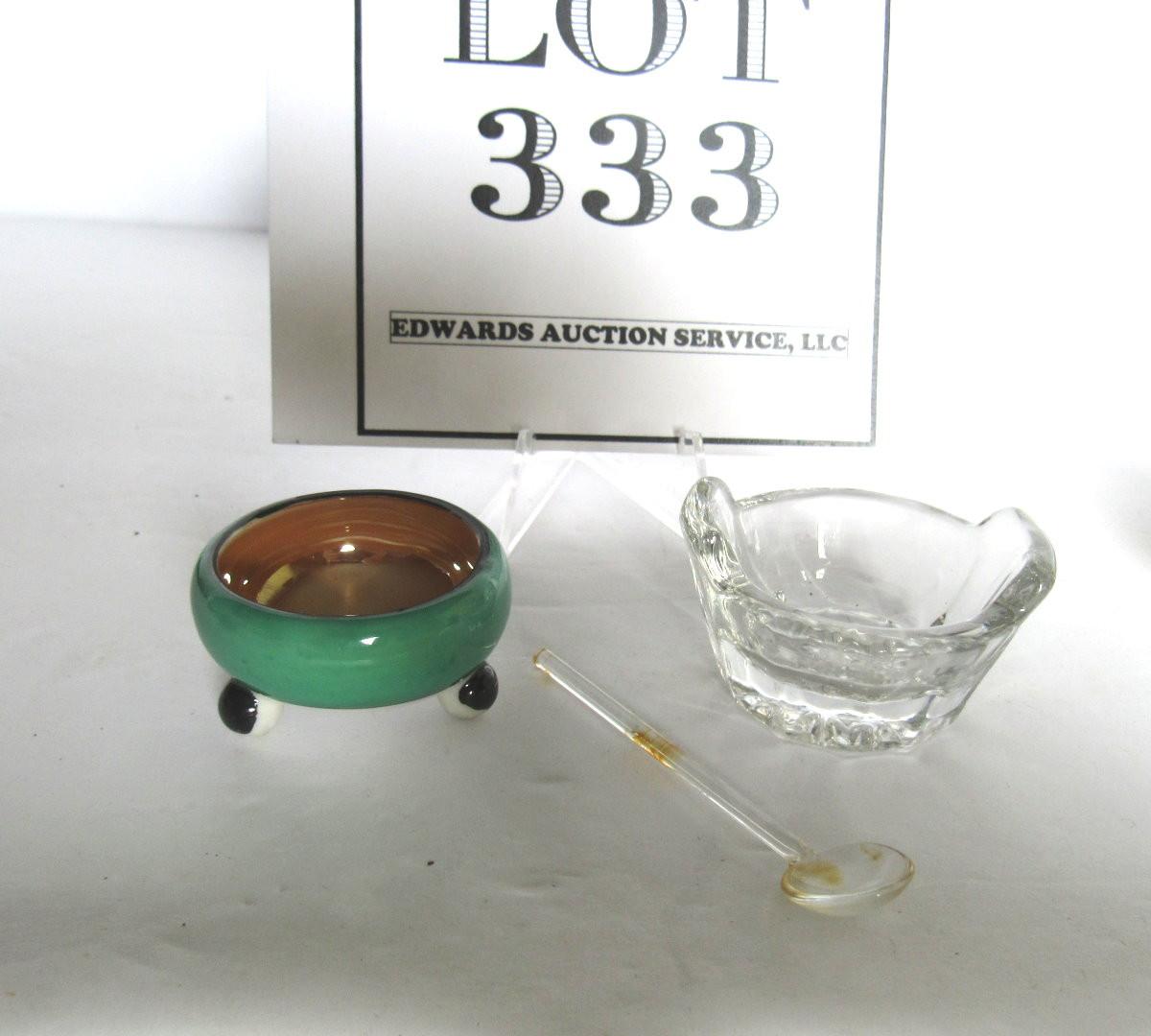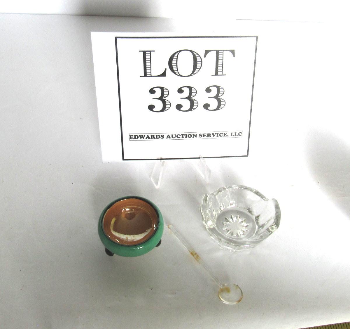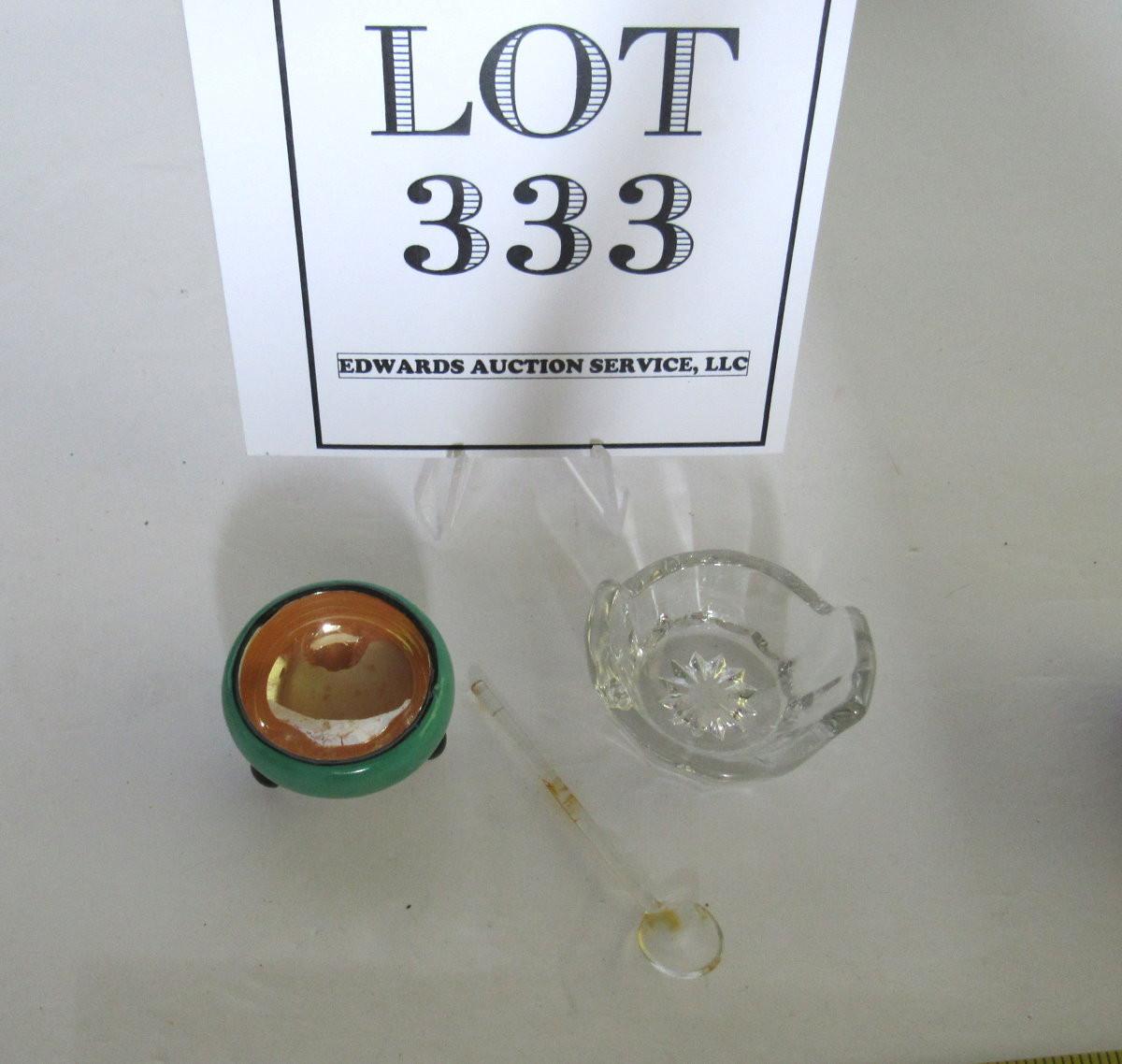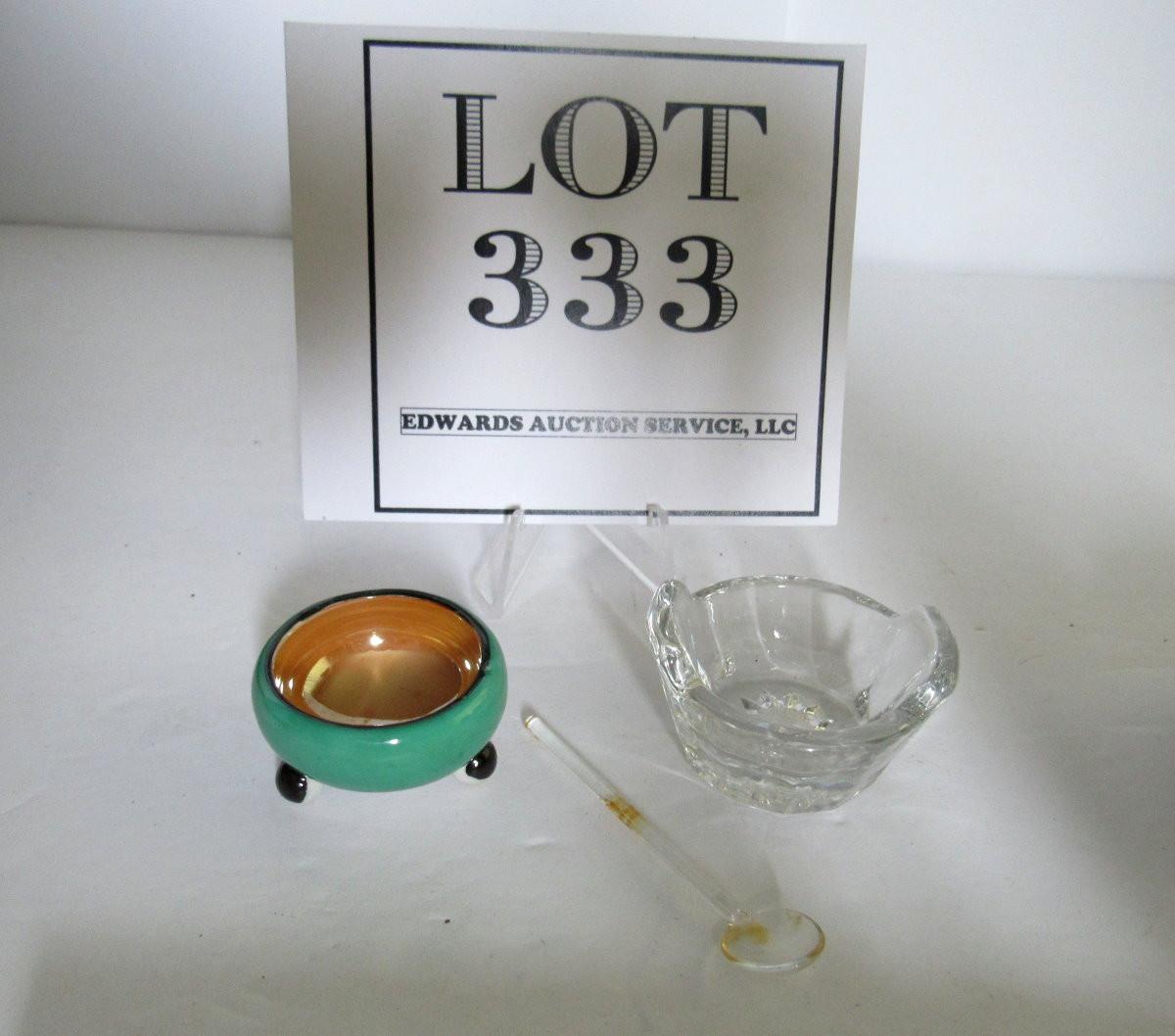 Japan Lusterware Salt Dip, Clear Salt Dip and Salt Spoon