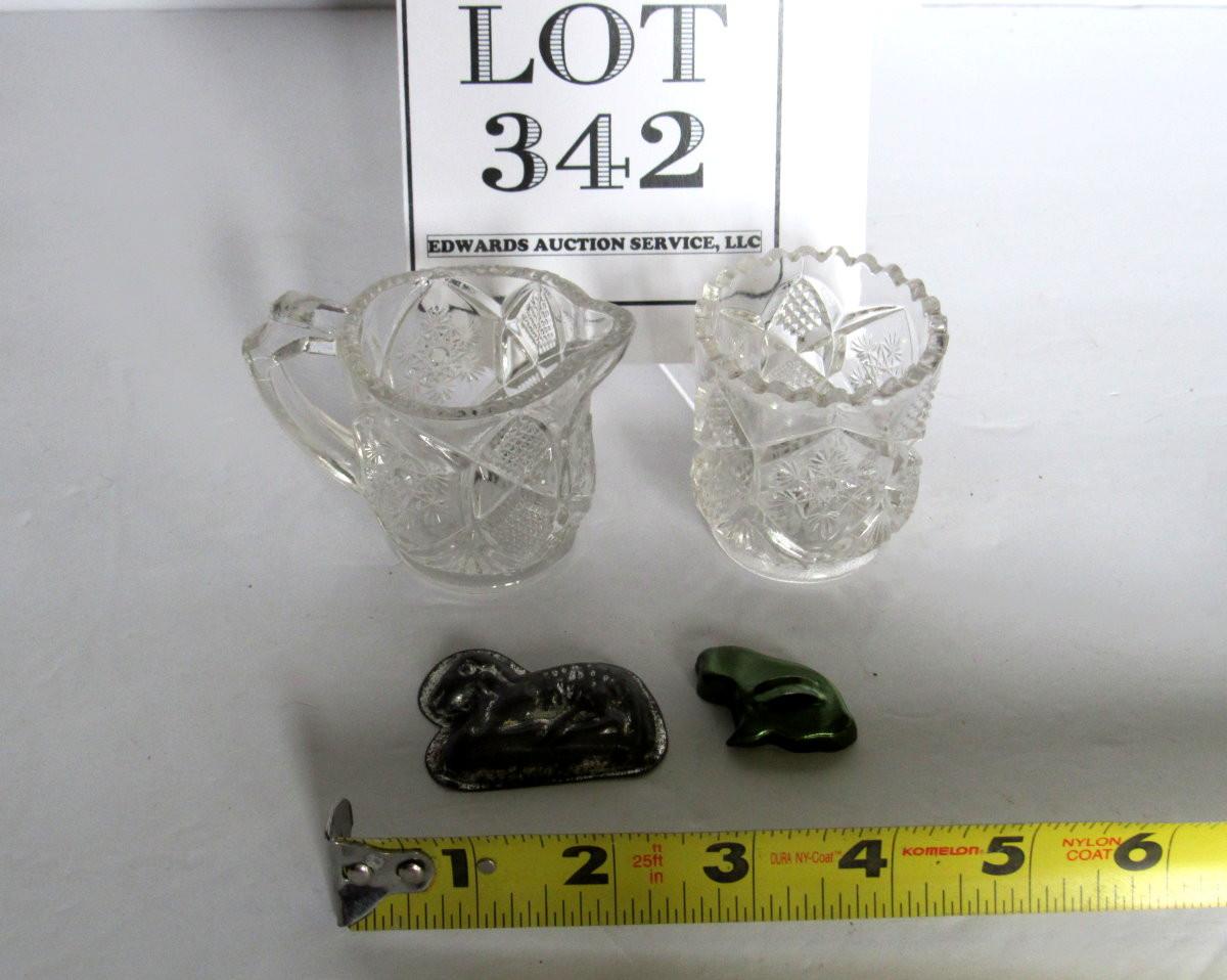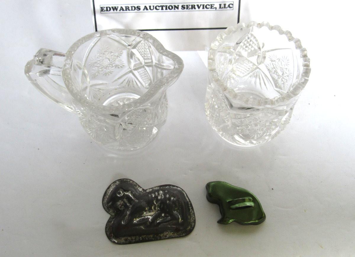 Vintage Child's Sugar Creamer Set and Tiny Tin Molds