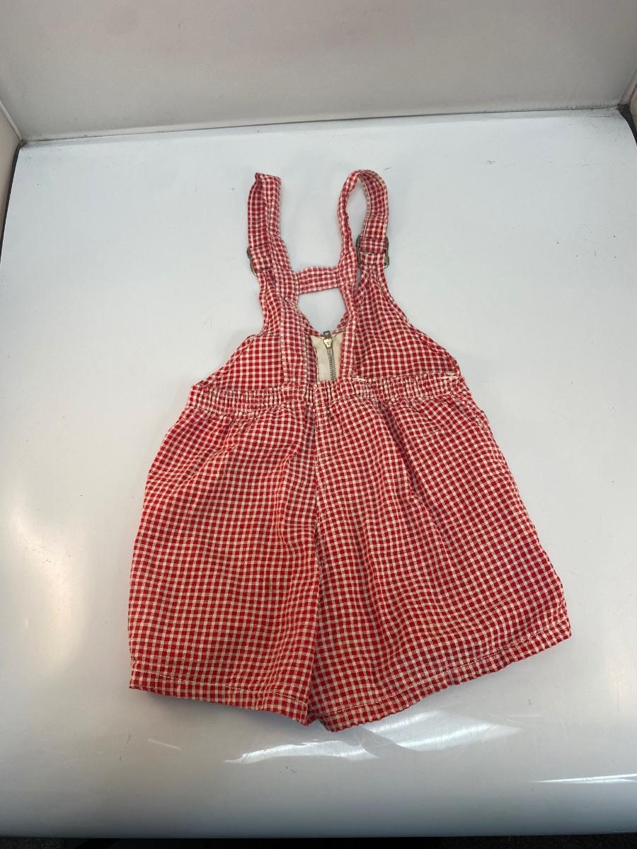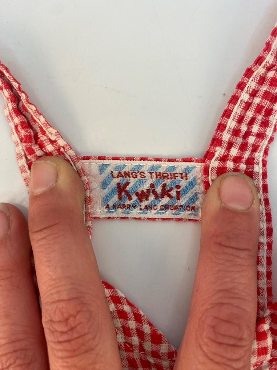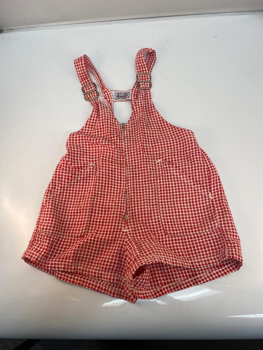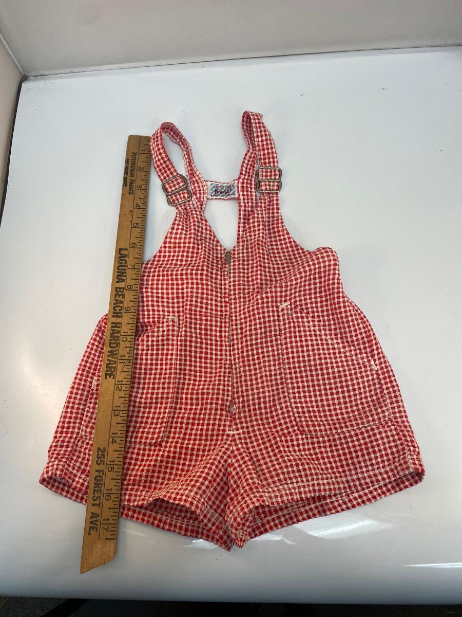 Pair of Vintage Red & White Gingham Plaid Toddler Infant Overalls Lang's Thrift Kwiki. In good vintage condition. No spots or holes noticed just some light wear from use. No size tag but they are toddler size.