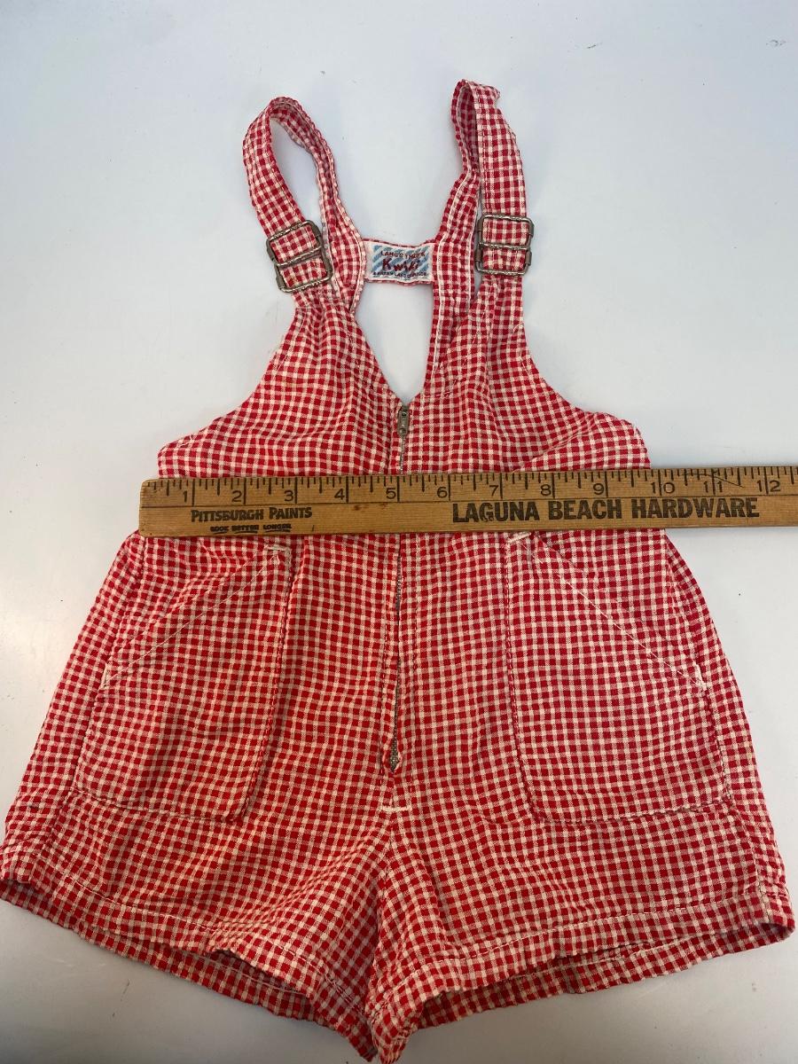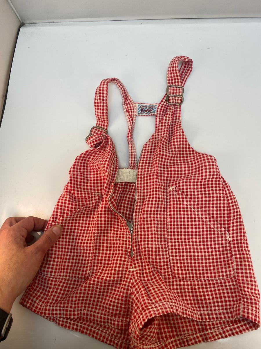 Pair of Vintage Red & White Gingham Plaid Toddler Infant Overalls Lang's Thrift Kwiki