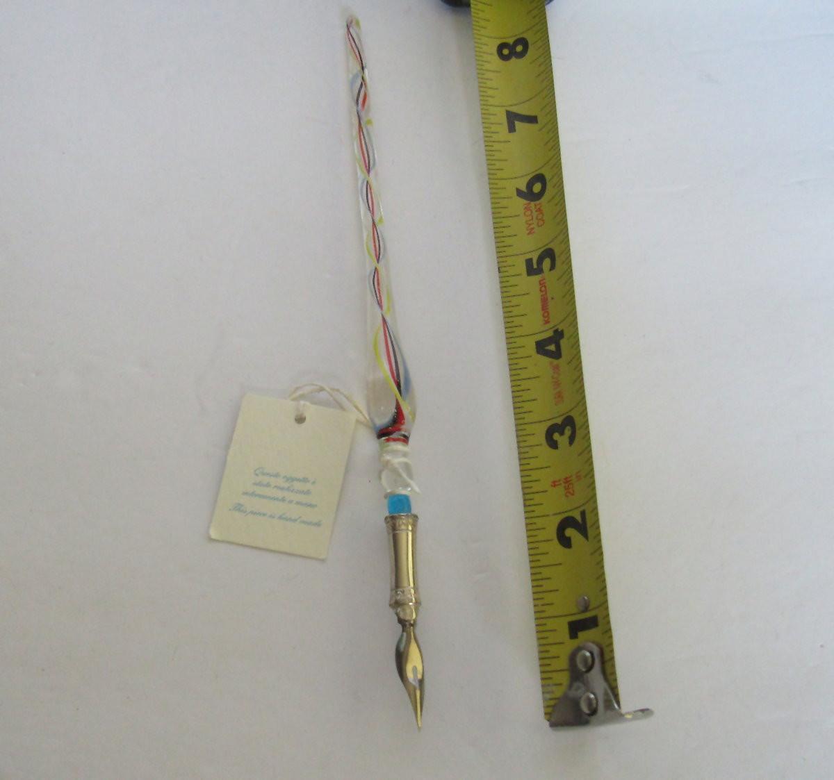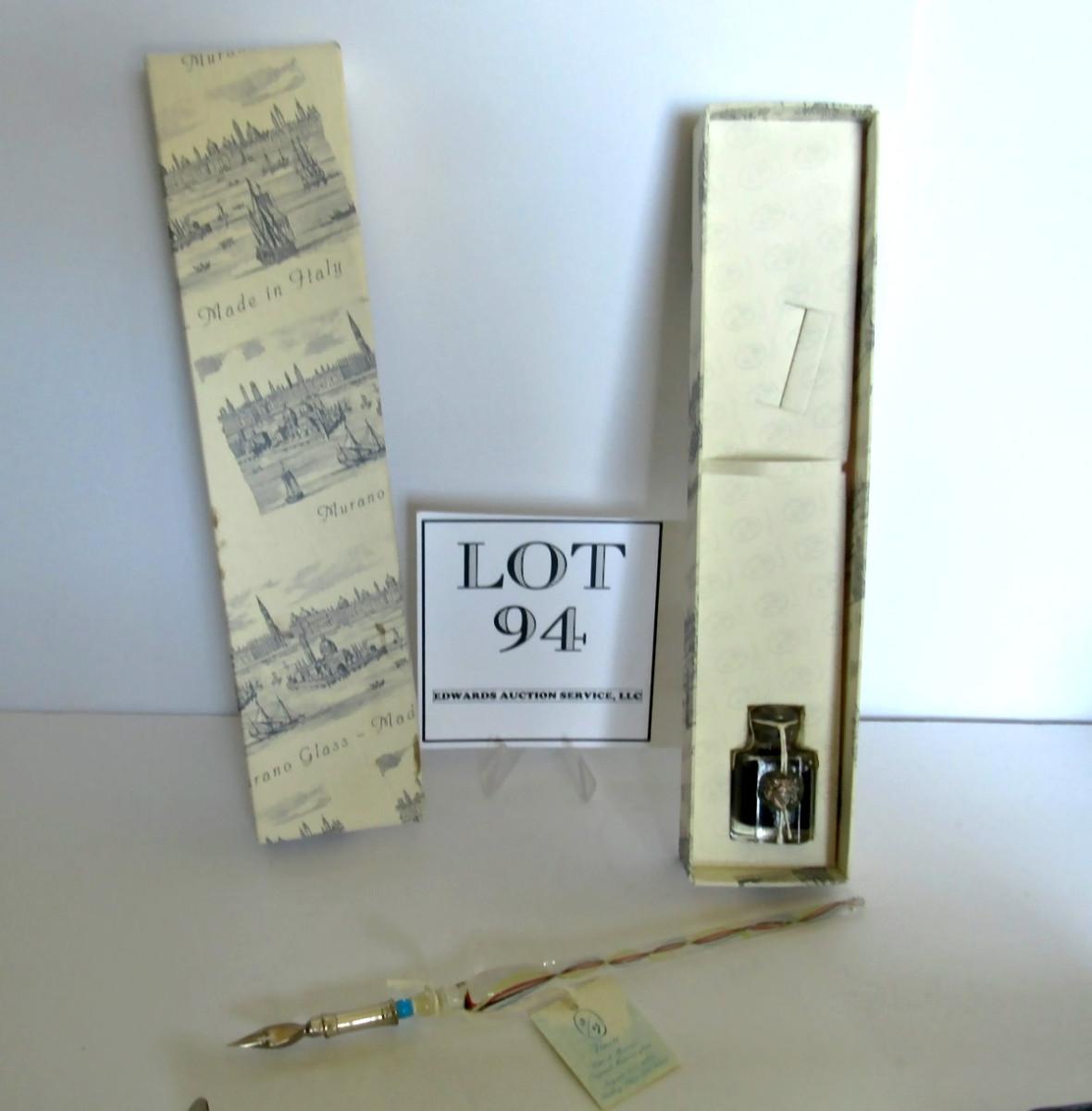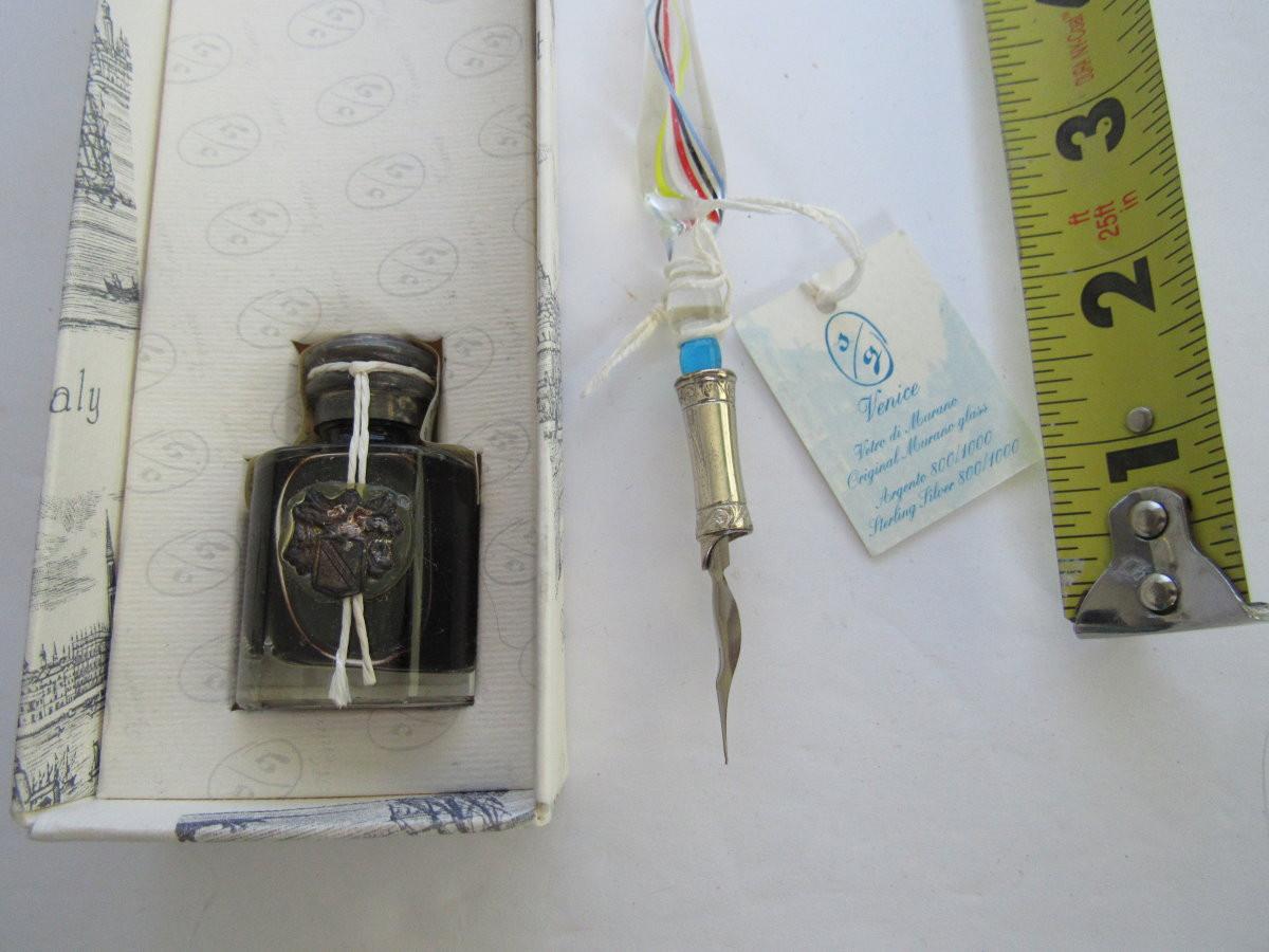 Nice Murano Italy Art Glass Ink Pen Sterling and Glass In Box