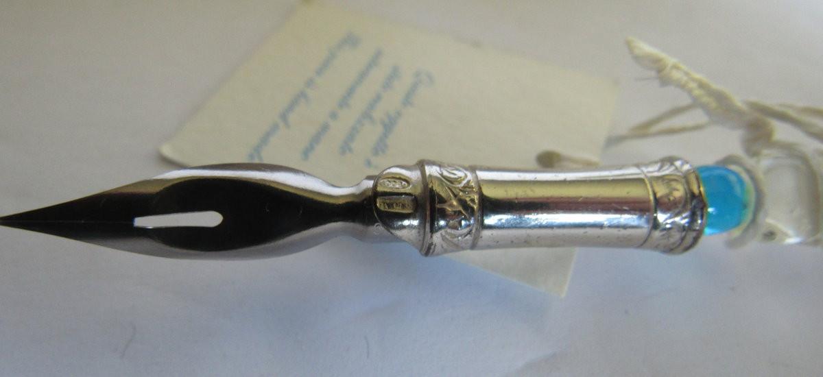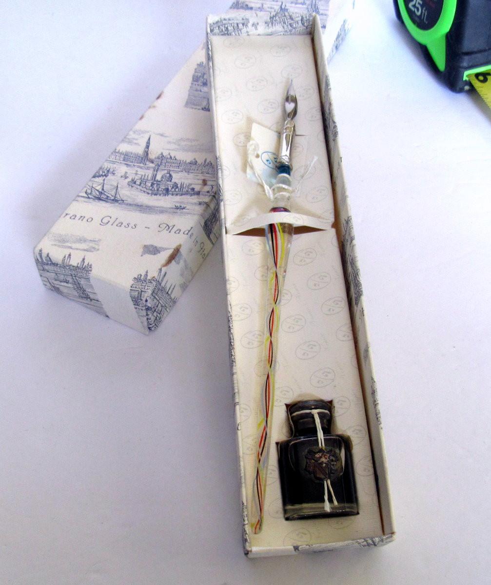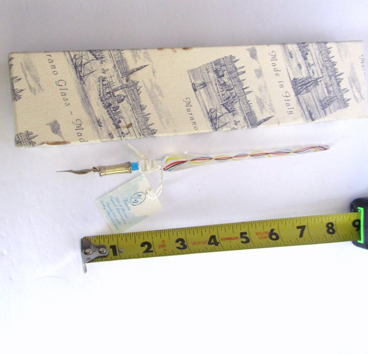 Nice Murano Italy Art Glass Ink Pen Sterling and Glass In Box