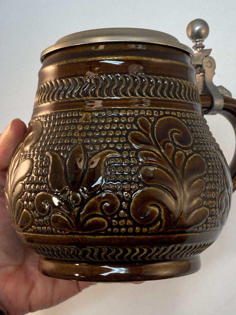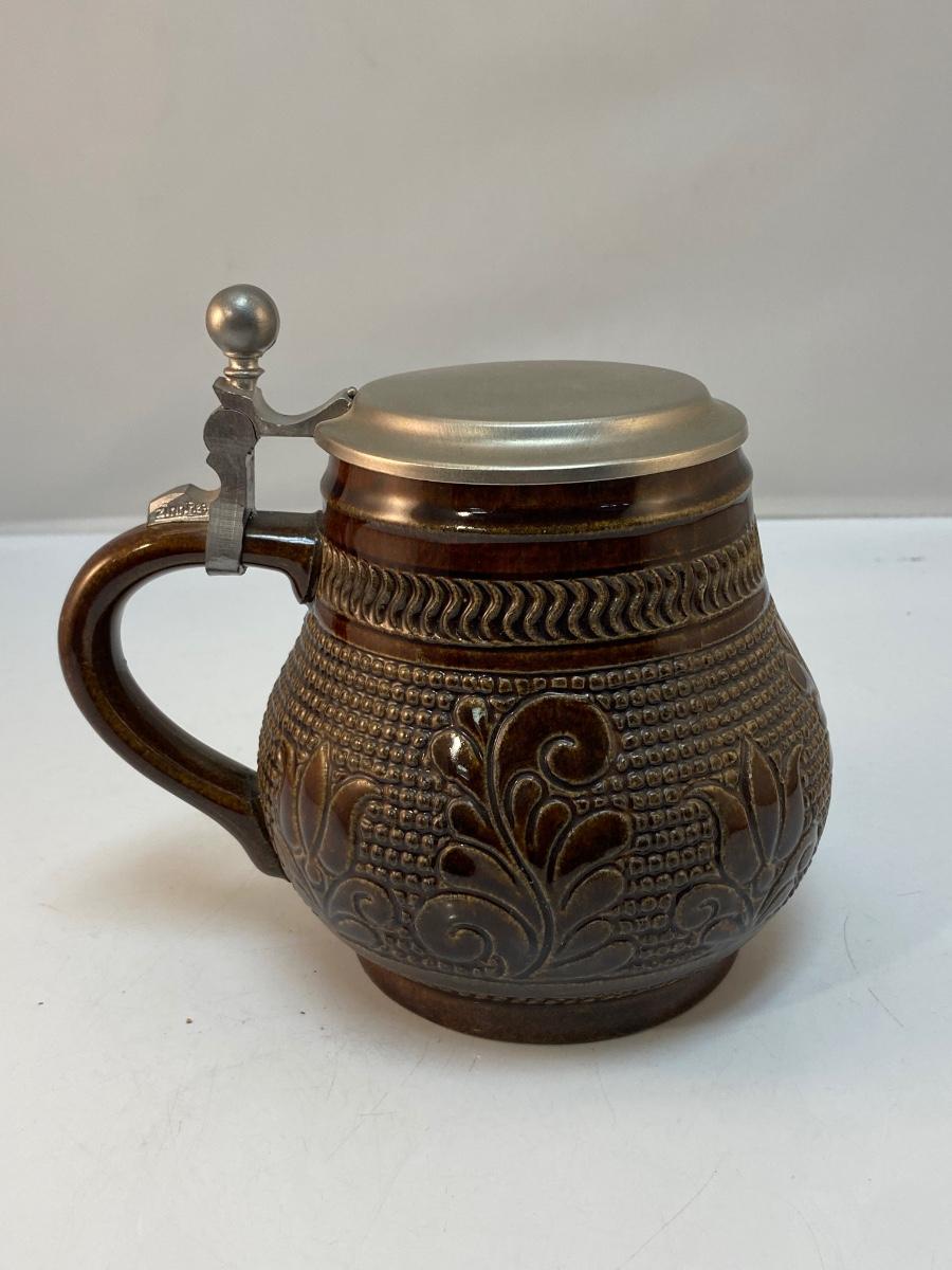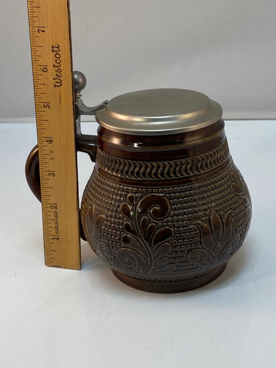 Vintage German Marzi & Remy Brown Flower & Dot Pattern Lidded Beer Stein