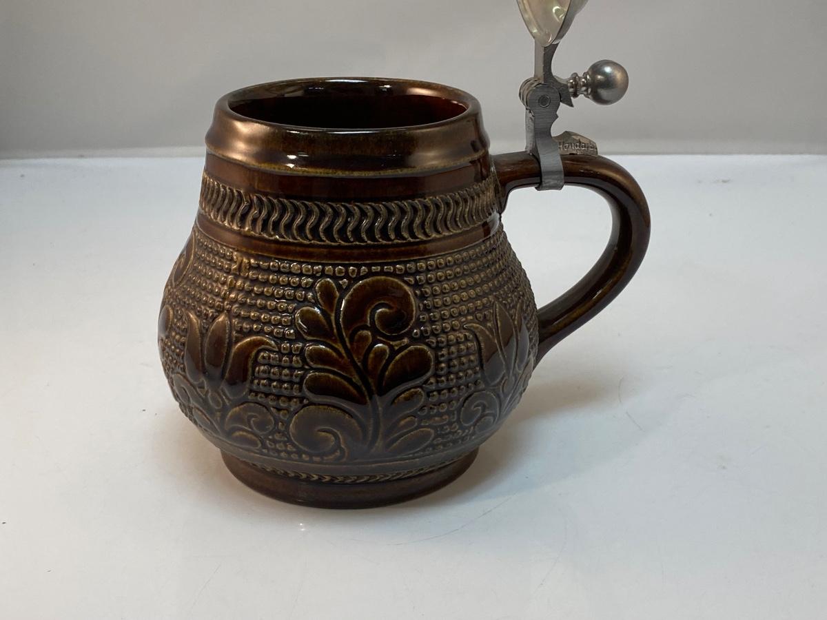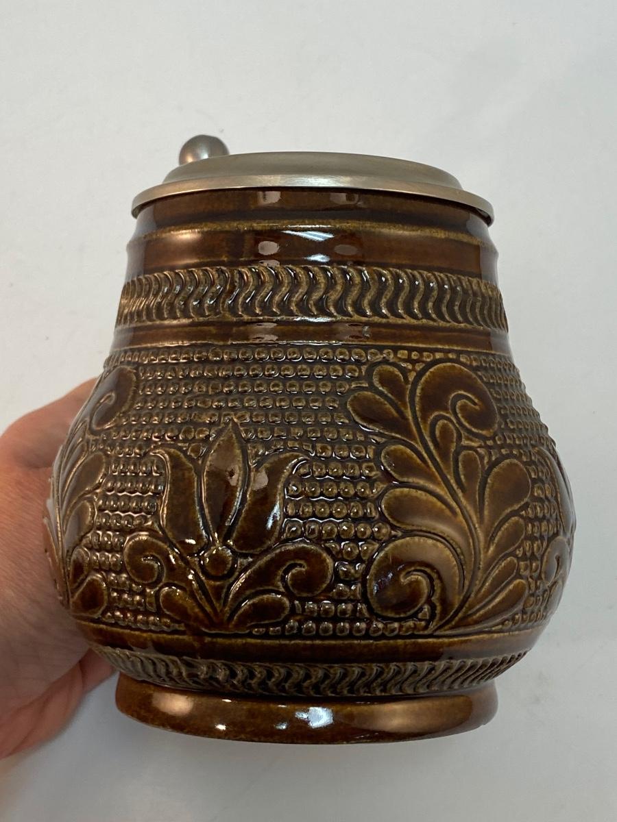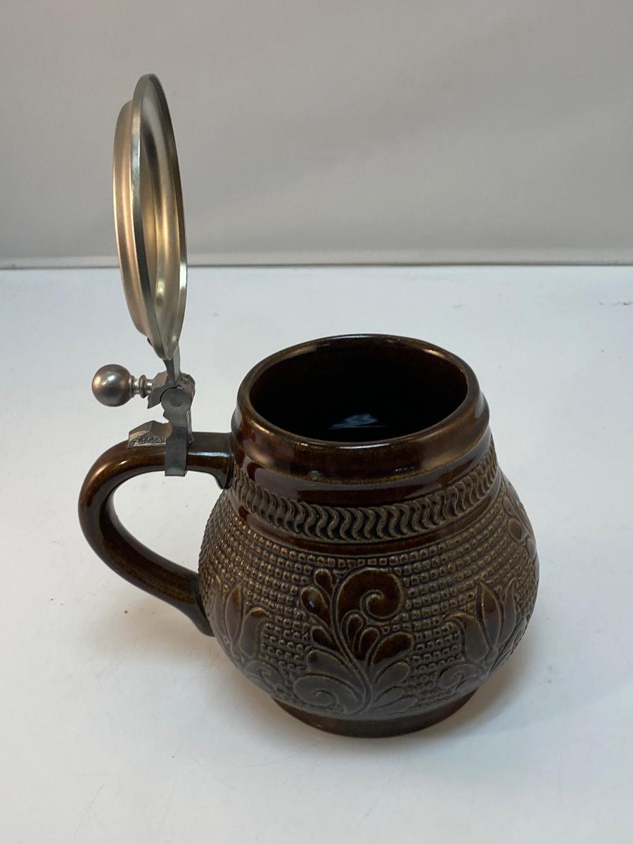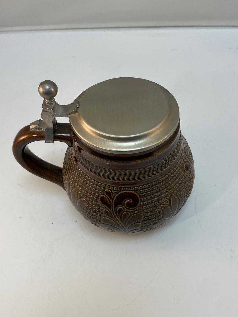 Vintage German Marzi & Remy Brown Flower & Dot Pattern Lidded Beer Stein