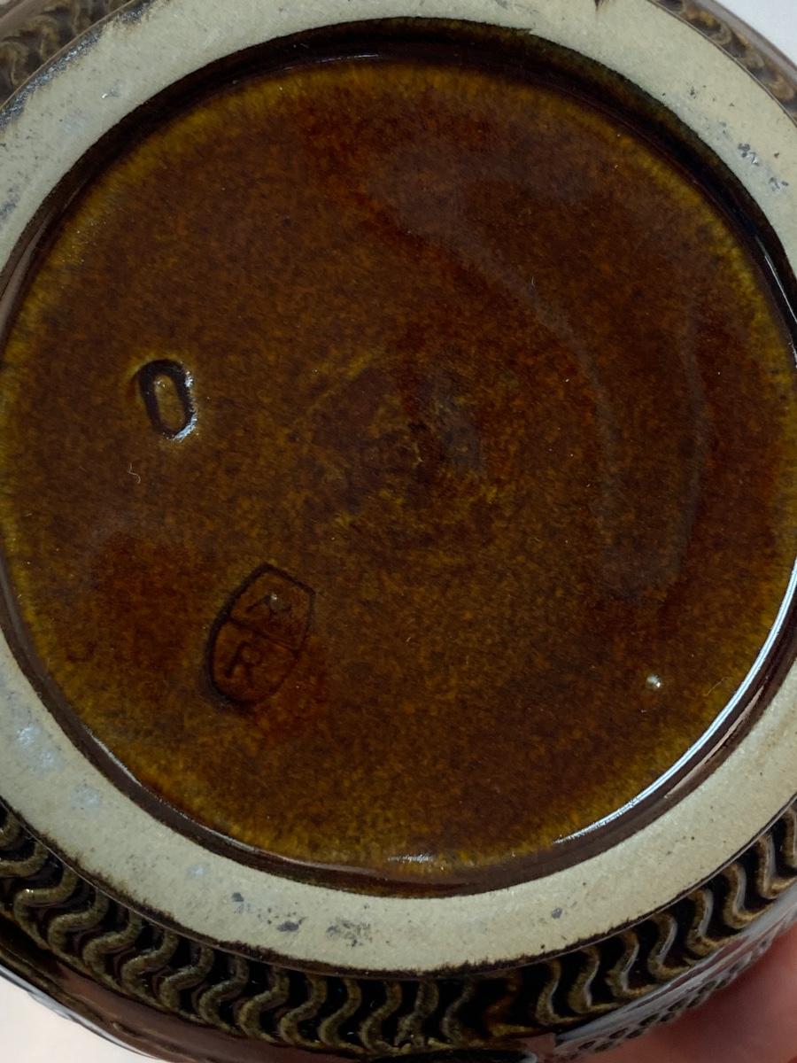 Vintage German Marzi & Remy Brown Flower & Dot Pattern Lidded Beer Stein. In good condition. Short, under 6" total height.