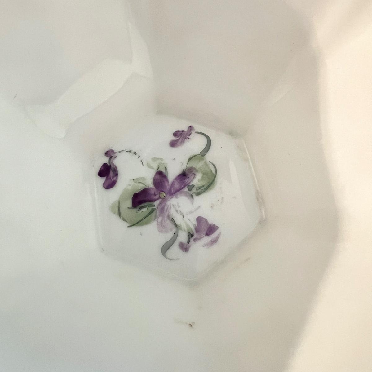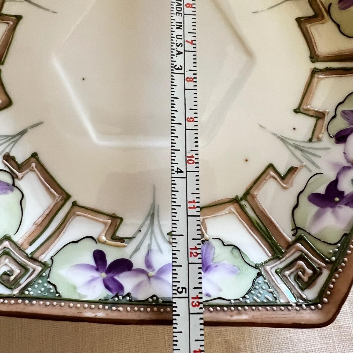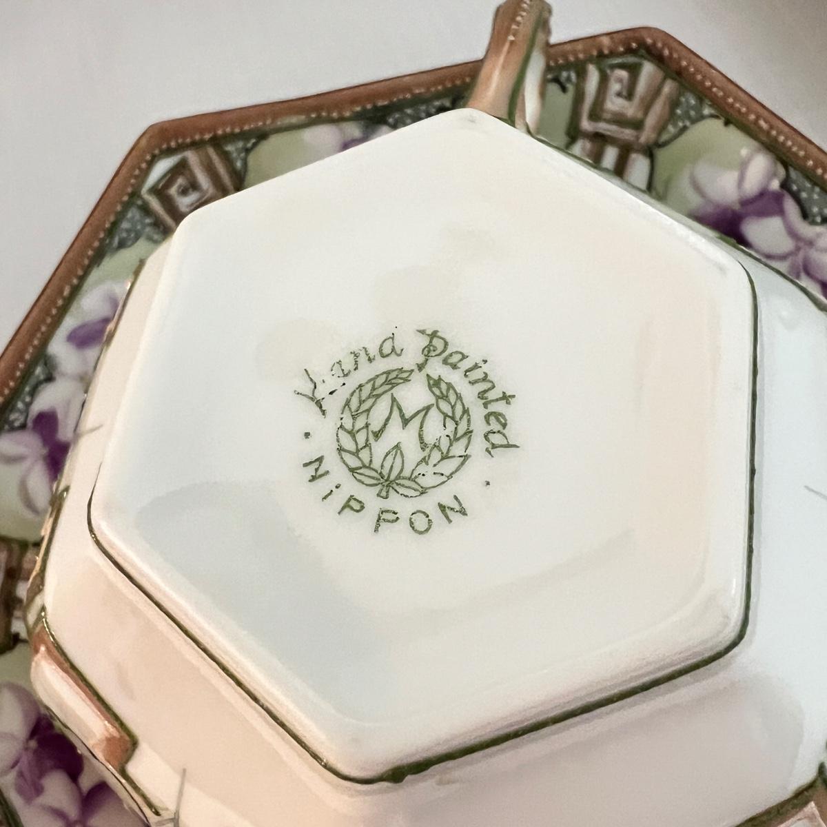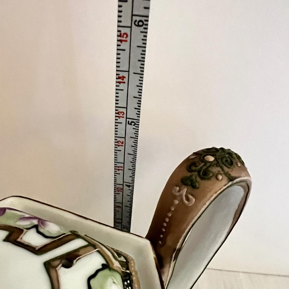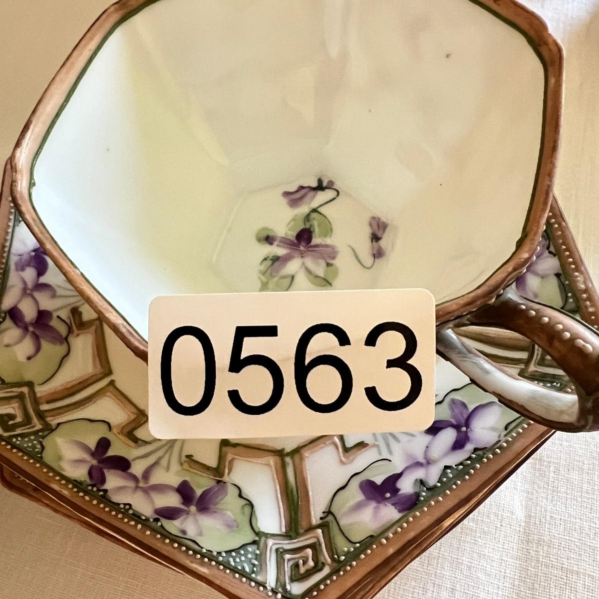 5 plates, 3 tea cups, 1 creamer, 1 tea pot and 1 sugar bowl. NOTE: sugar bowl knob is broken off as shown in pics. Still an absolutely beautiful set!