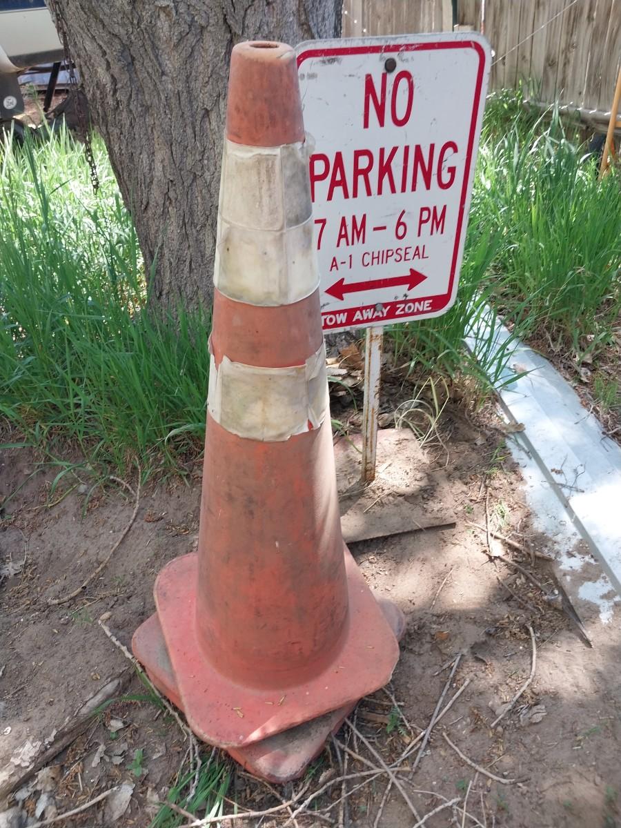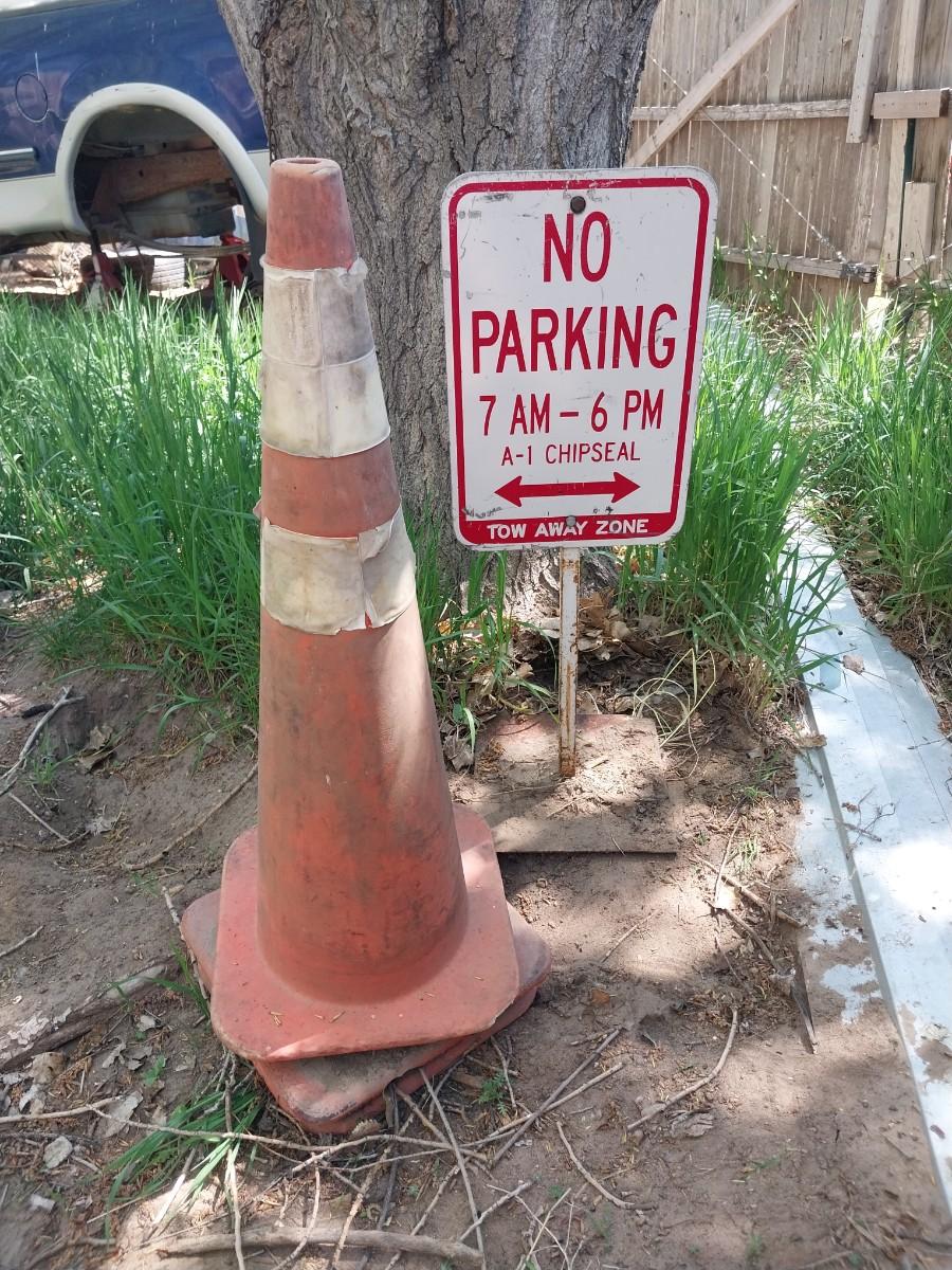NO PARKING SIGN AND TWO CONES