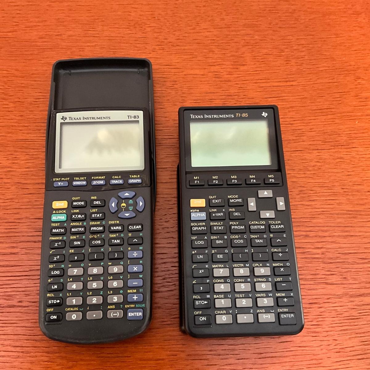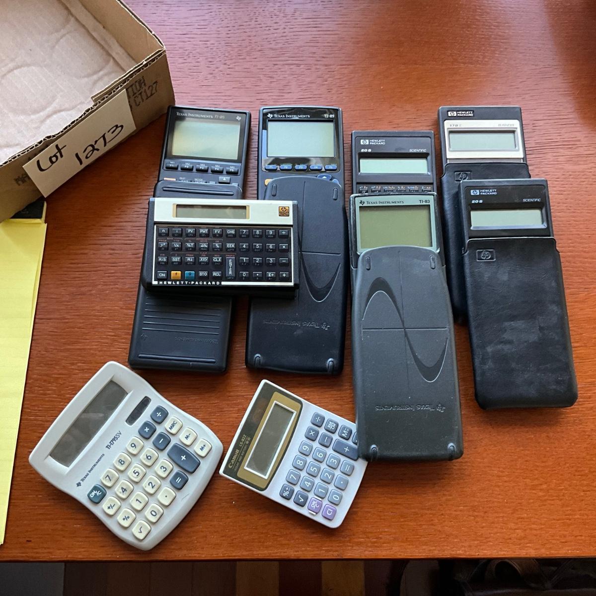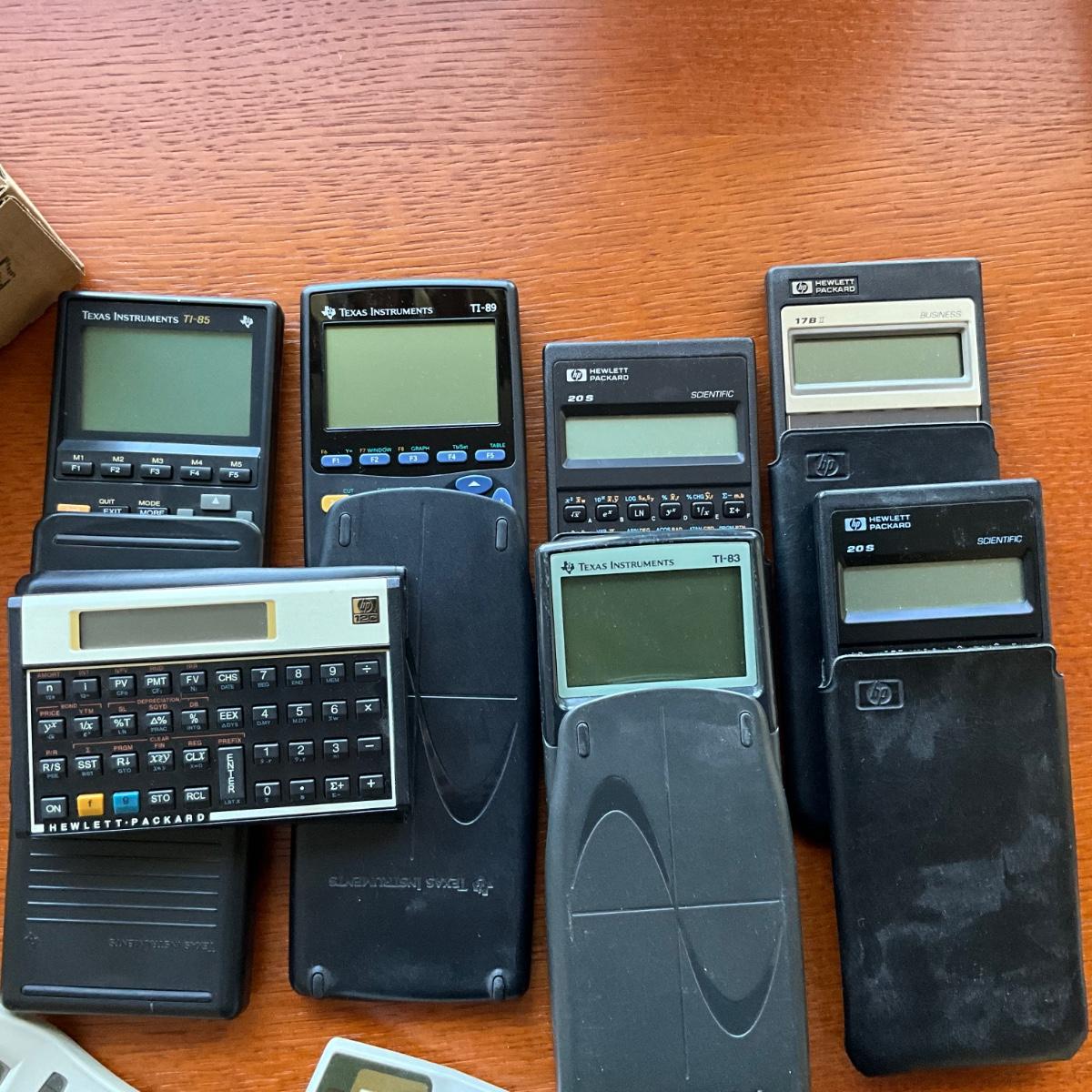 regular calculators and Scientific Texas Instruments Calculators 12C, 20S, 17BII,TI83,TI85,TI89