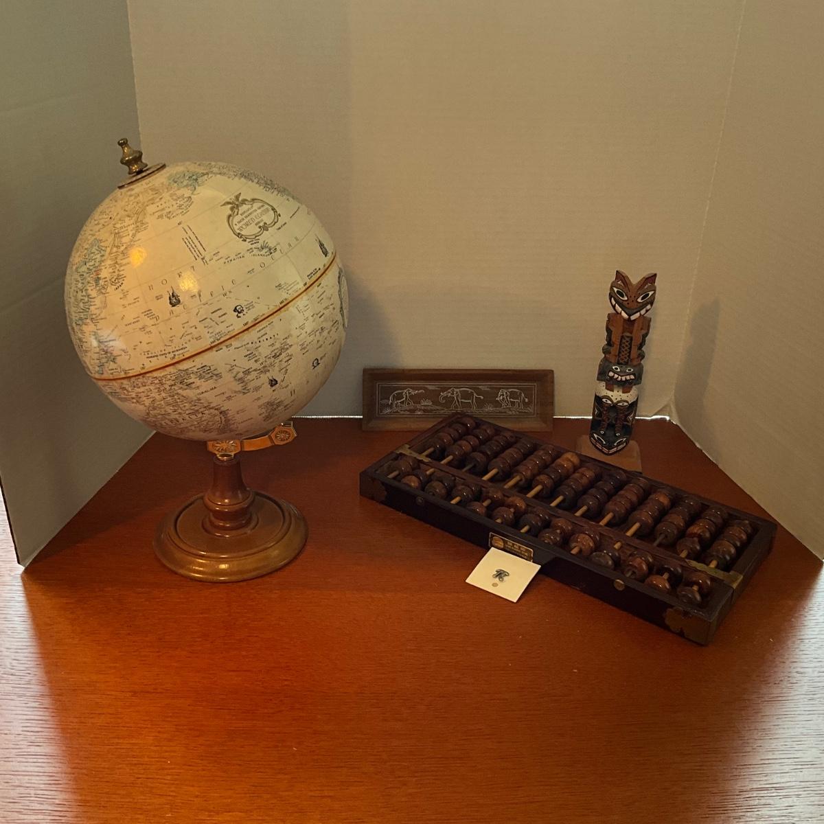 NO1284 Vintage Abacus , Globe and Painted Totem Pole