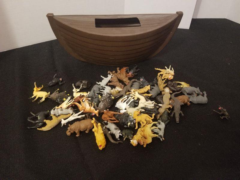 I think the boat is missing some parts to it. Animals all fit inside. You get everything from a Koala Bear to an Alligator. Fun for the little ones. Could use cleaning