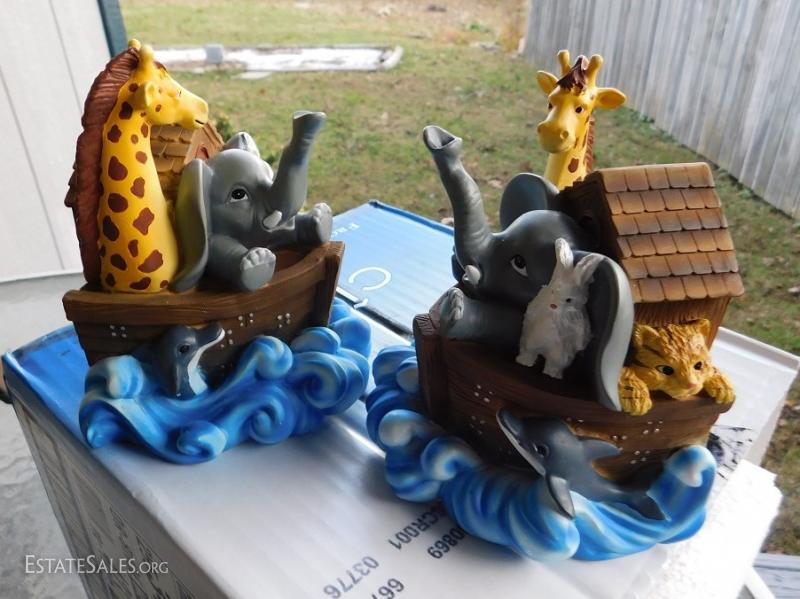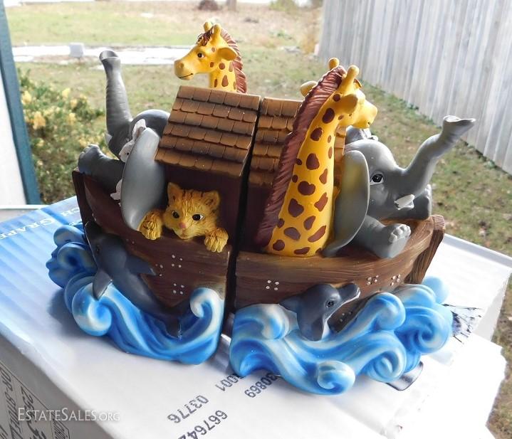 Noah's Ark Book Ends appear to be brand new. Box was in bad shape but item was well protected in Styrofoam container. Very nice item.