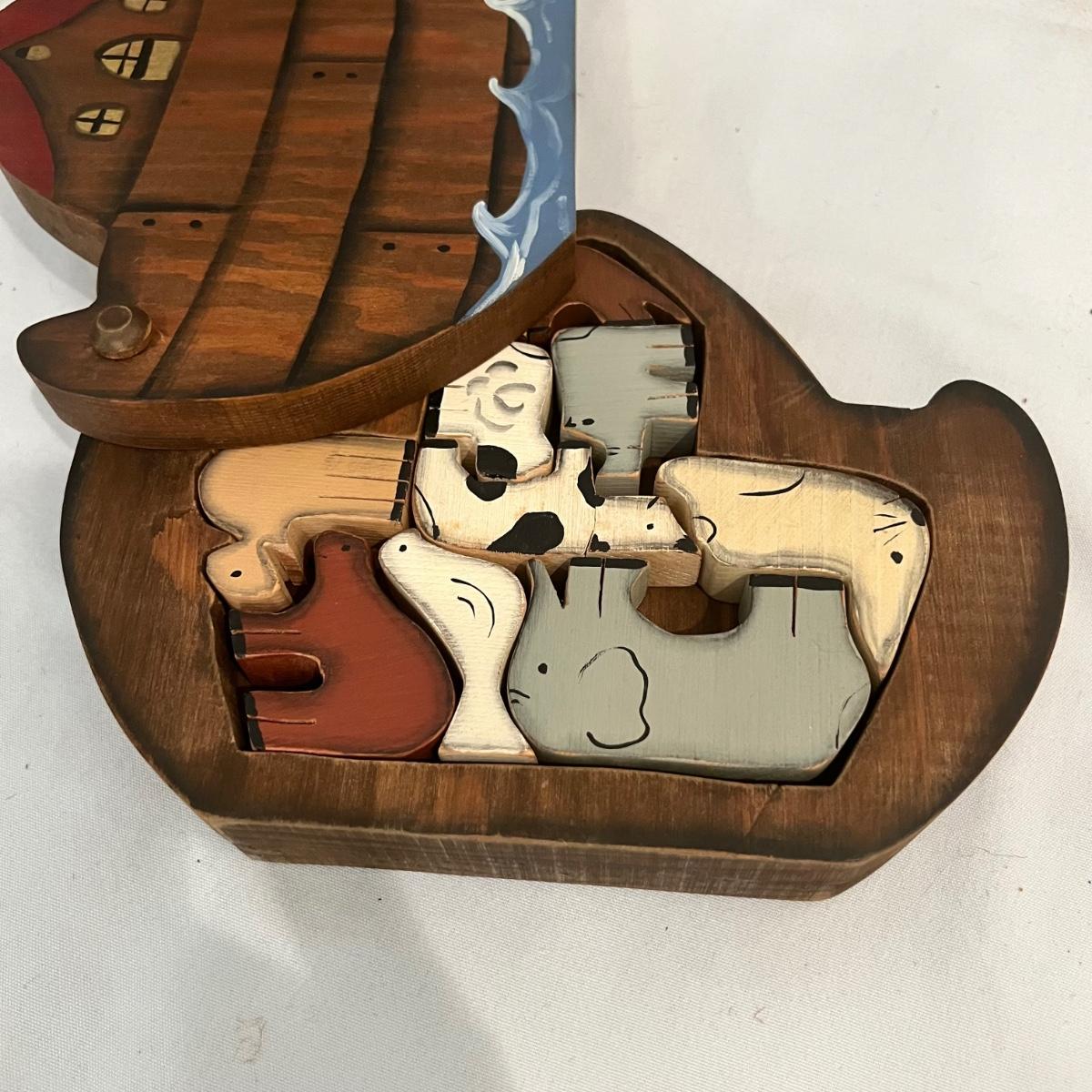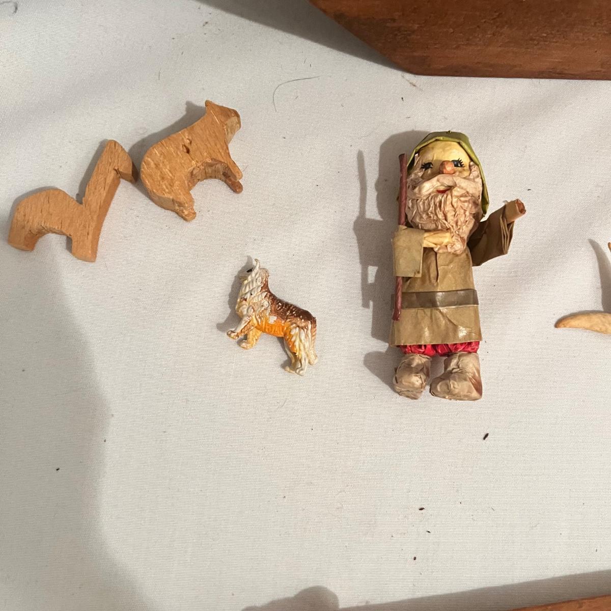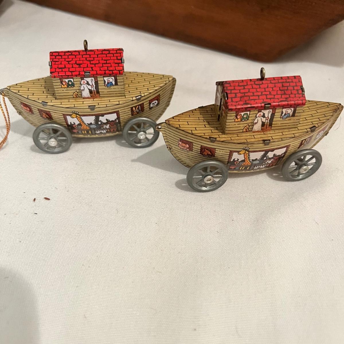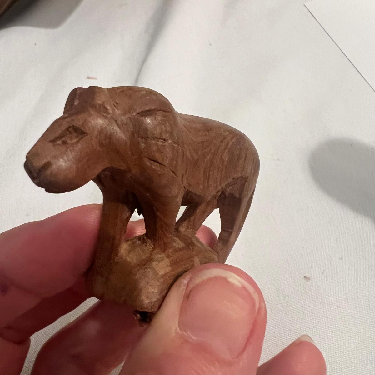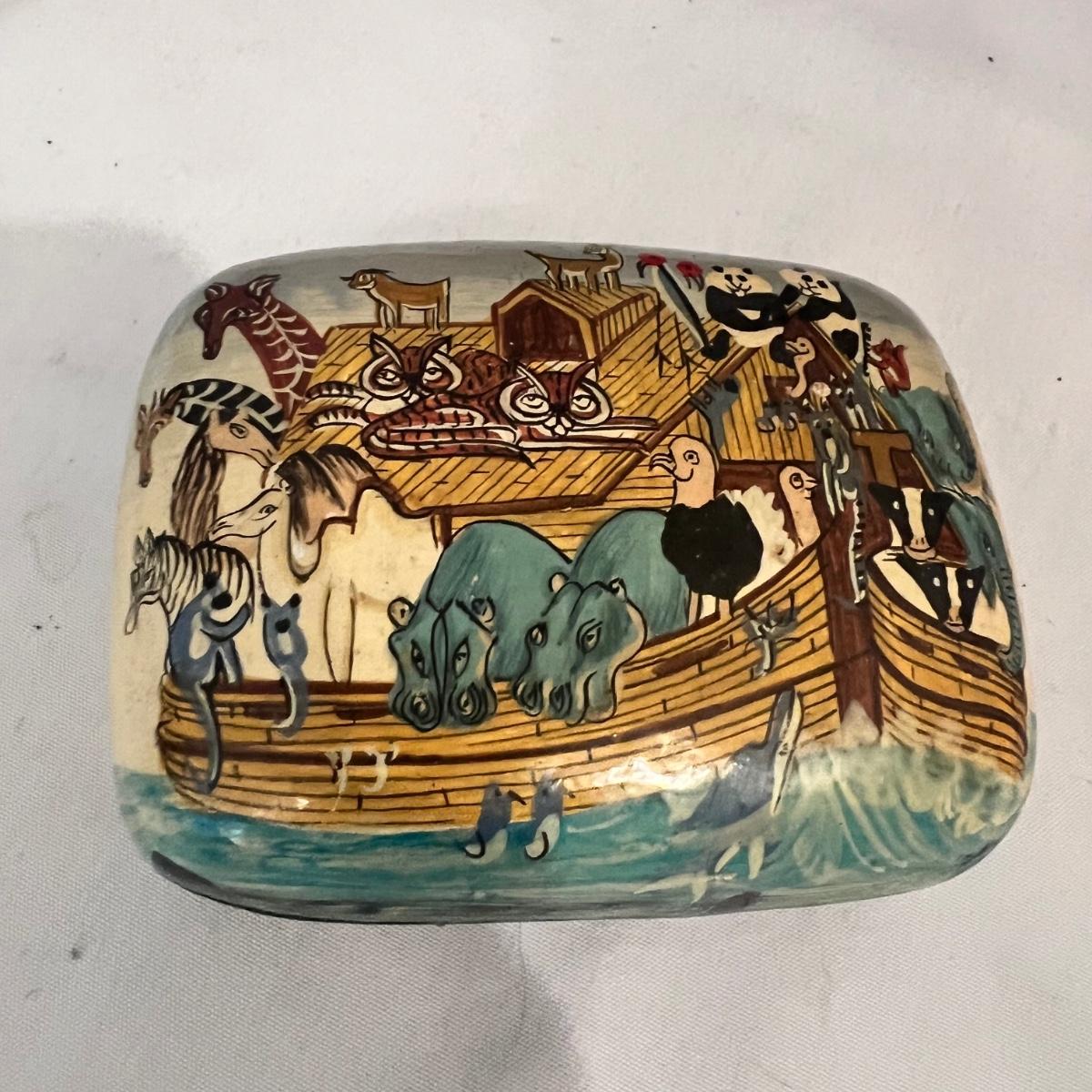 All things Noah's Ark & animals. This lot includes a large pillow, books, puzzles, figurines, ornaments, trinket boxes, and a play toy Ark. The nine carved wooden animal figurines each measure approximately 2.25” x .5” x 2”H. Please note that the bottoms of some of these have broken off. The pillow measures approximately 24” x 5” x 18”H. It has some pet hair and will need to be cleaned. Please see photos for inventory.