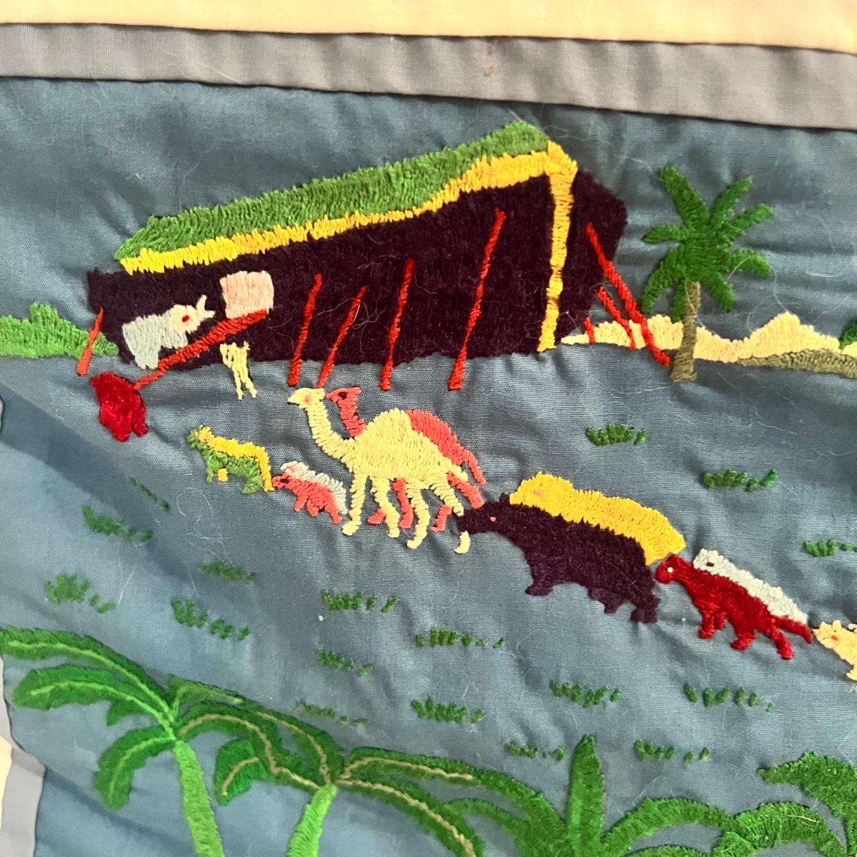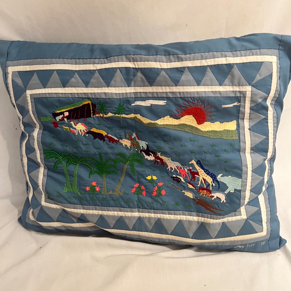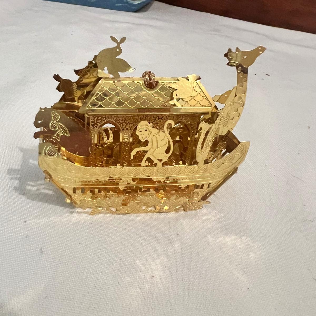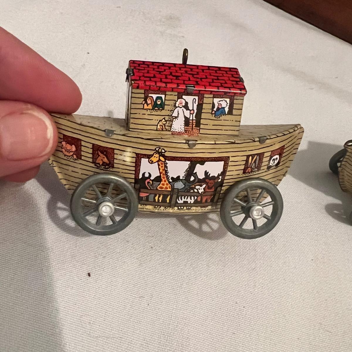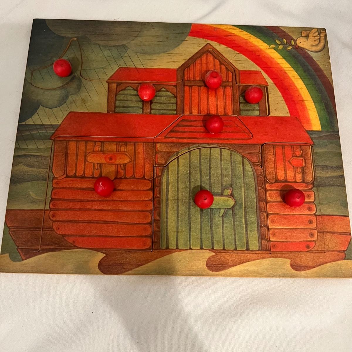 All things Noah's Ark & animals. This lot includes a large pillow, books, puzzles, figurines, ornaments, trinket boxes, and a play toy Ark. The nine carved wooden animal figurines each measure approximately 2.25” x .5” x 2”H. Please note that the bottoms of some of these have broken off. The pillow measures approximately 24” x 5” x 18”H. It has some pet hair and will need to be cleaned. Please see photos for inventory.