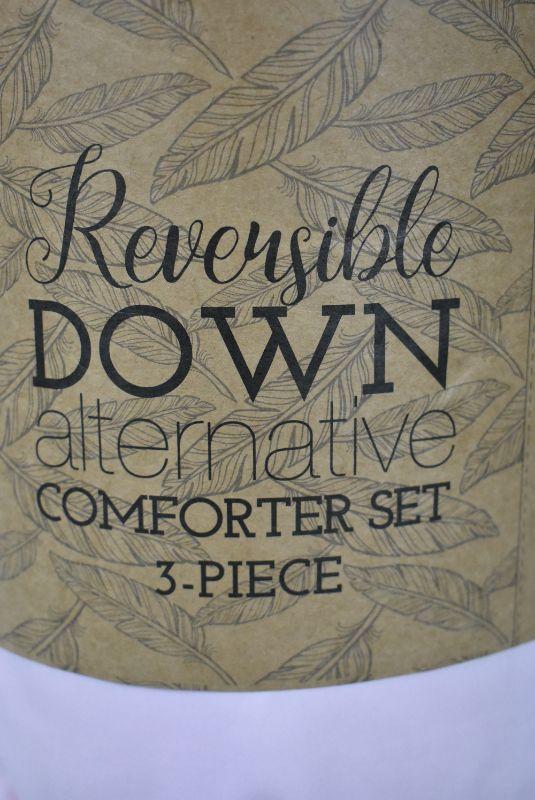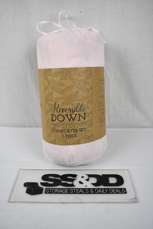 Noble Linens Premium Down Alternative Reversible 3-Piece Comforter Set, Full/Queen, Blush - New