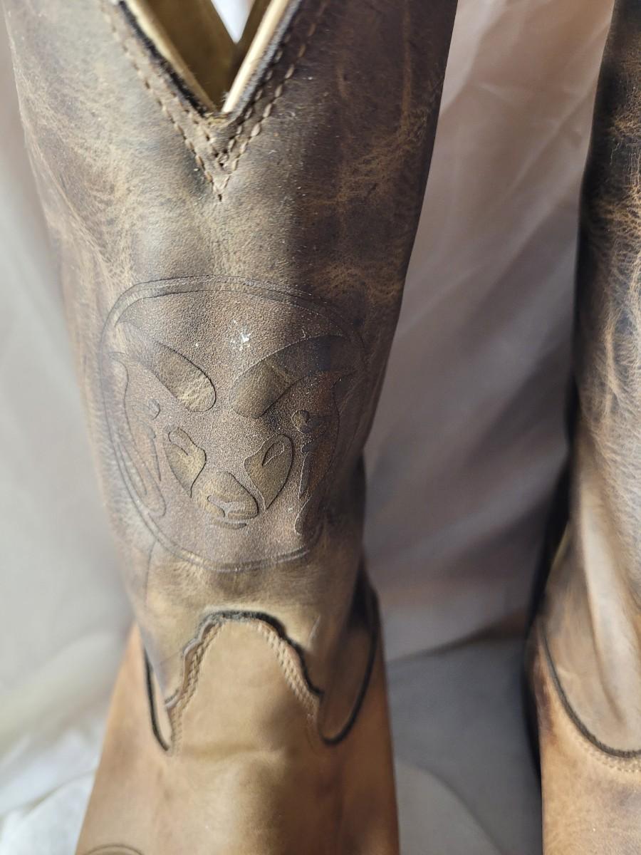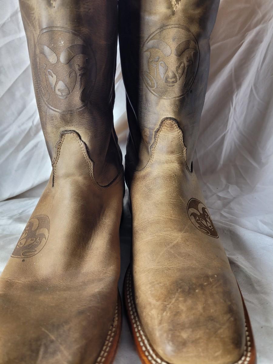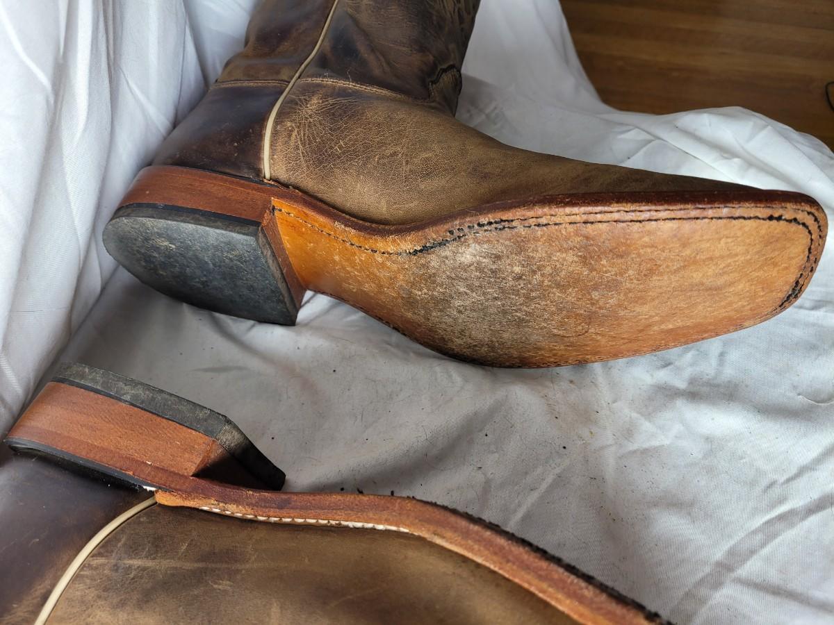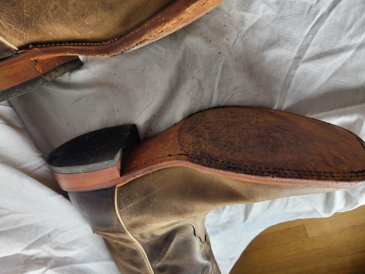 Small signs of use but the heals are perfect and leather soles have very limited wear. Almost a suedlike distressed look.