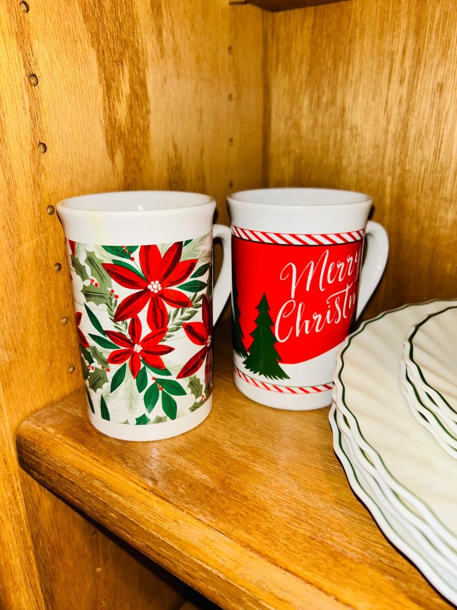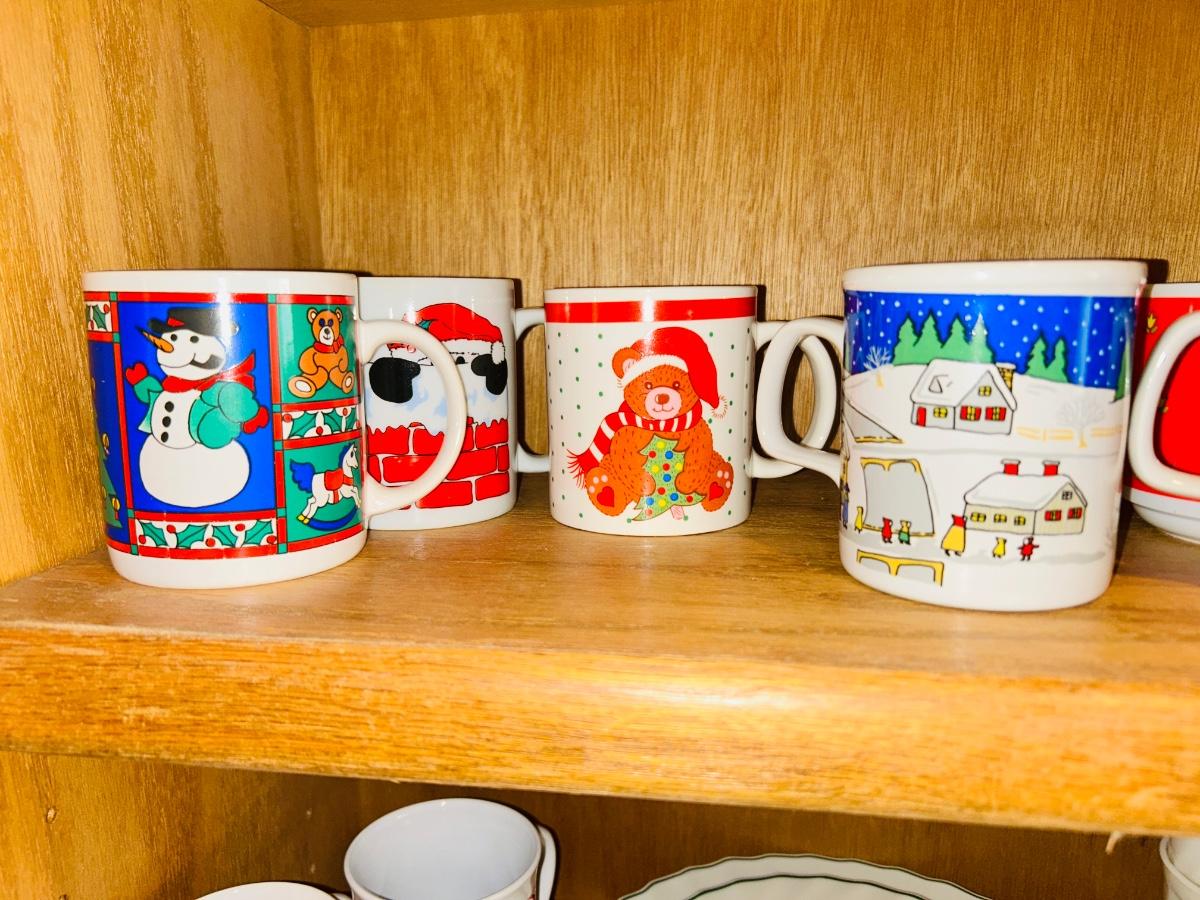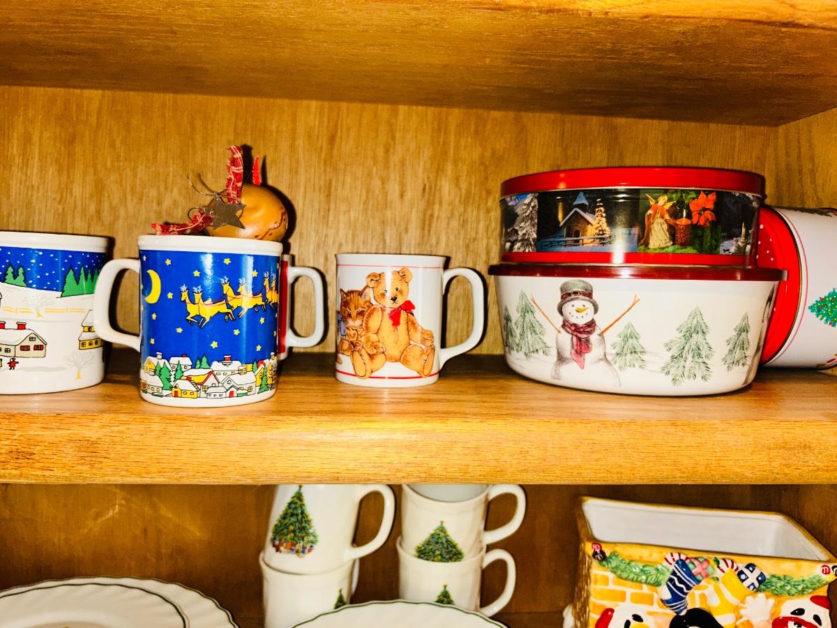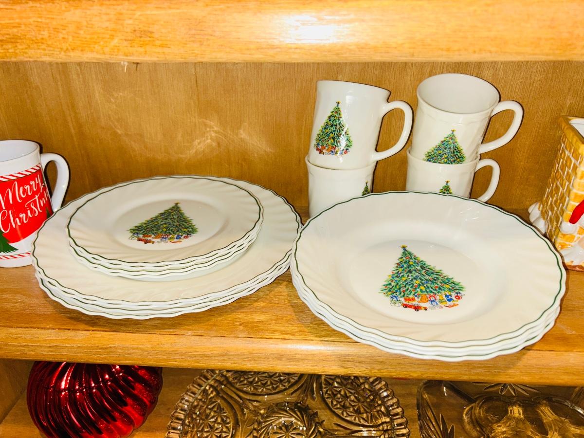 NOEL PORCELLE CHRISTMAS DISHES & AN ASSORTMENT OF CHRISTMAS KITCHEN ITEMS AND DECOR