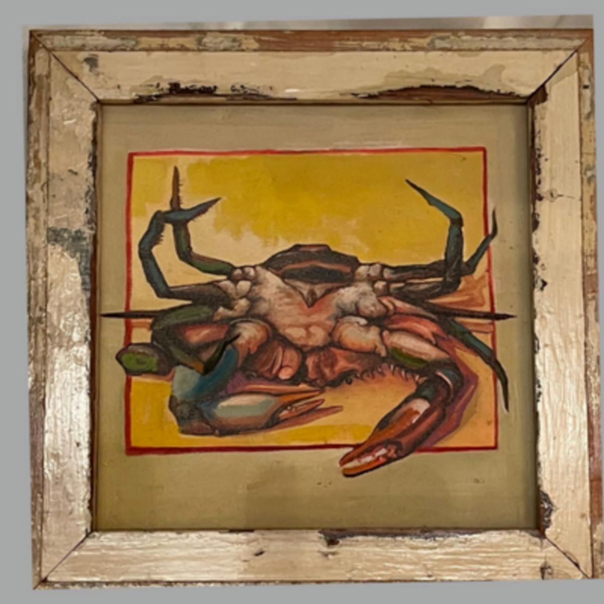 This is a common sight in our city. This is an artists rendition of the crab framed in wood. It measures 13 x 13