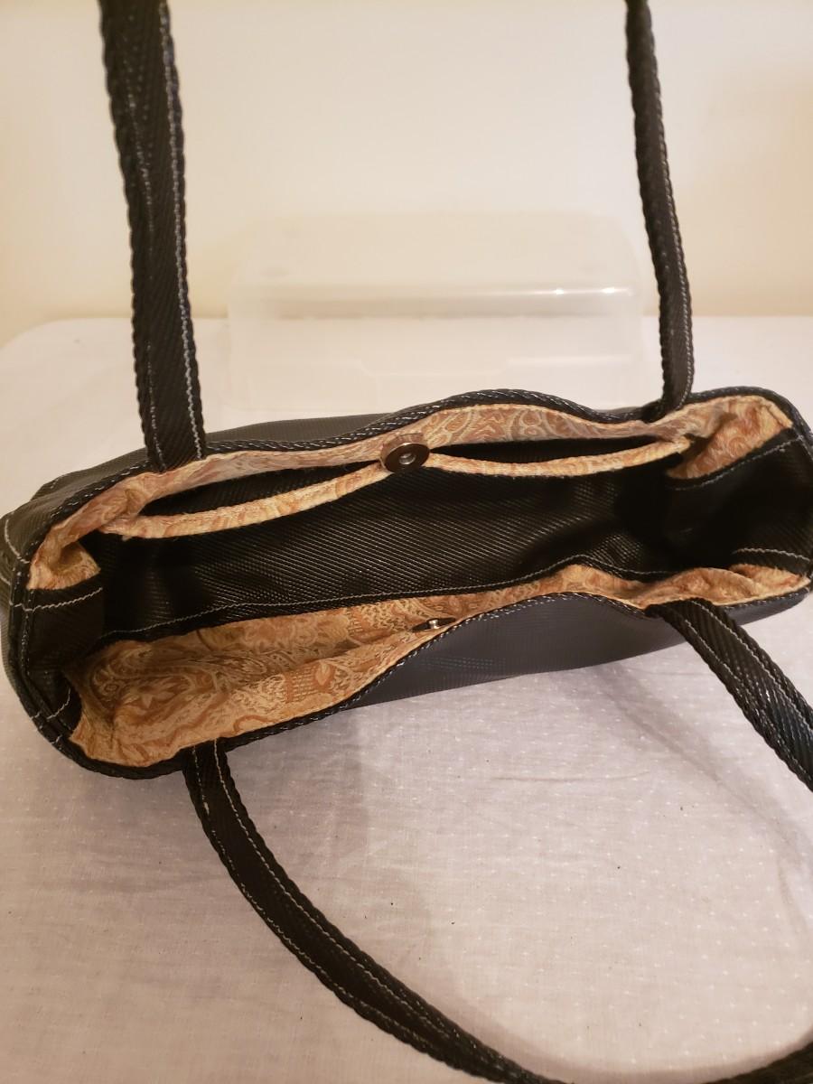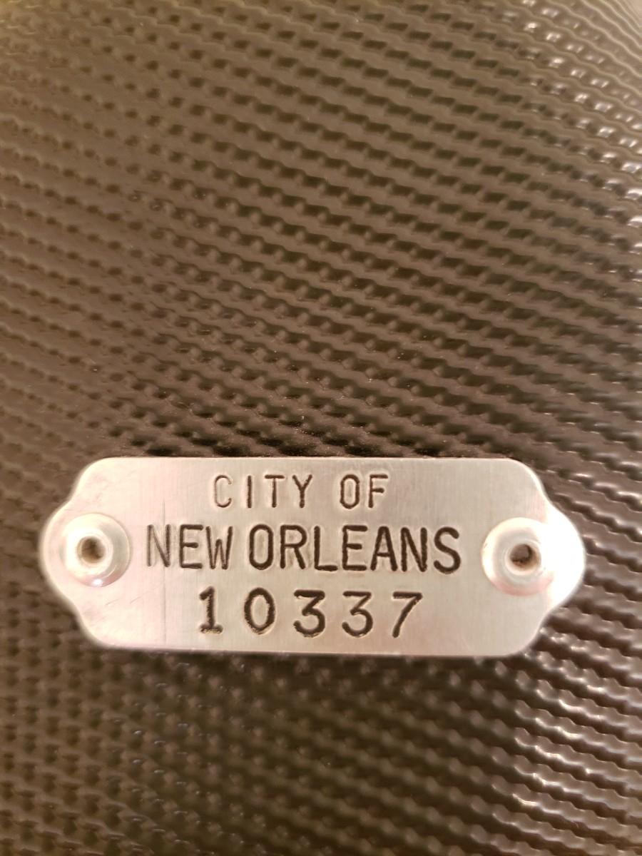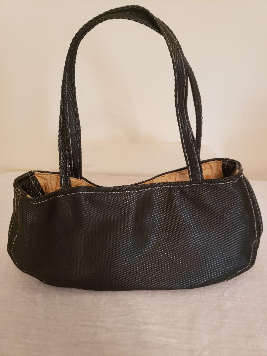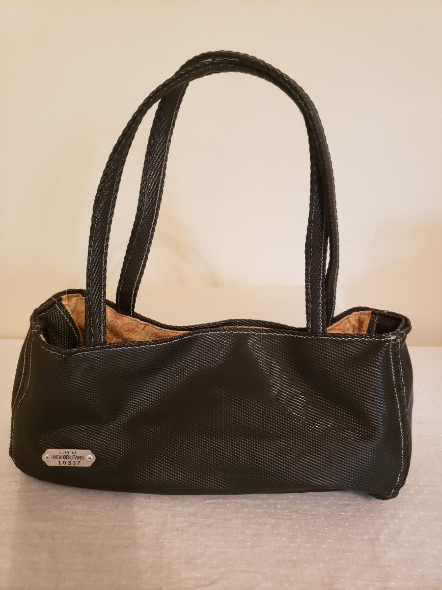 Hand crafted purse made from NOFD fire hose interior. Adorned with firehouse Locker tag #10337. 2010. 14" x 6" x 3". Excellent Condition.