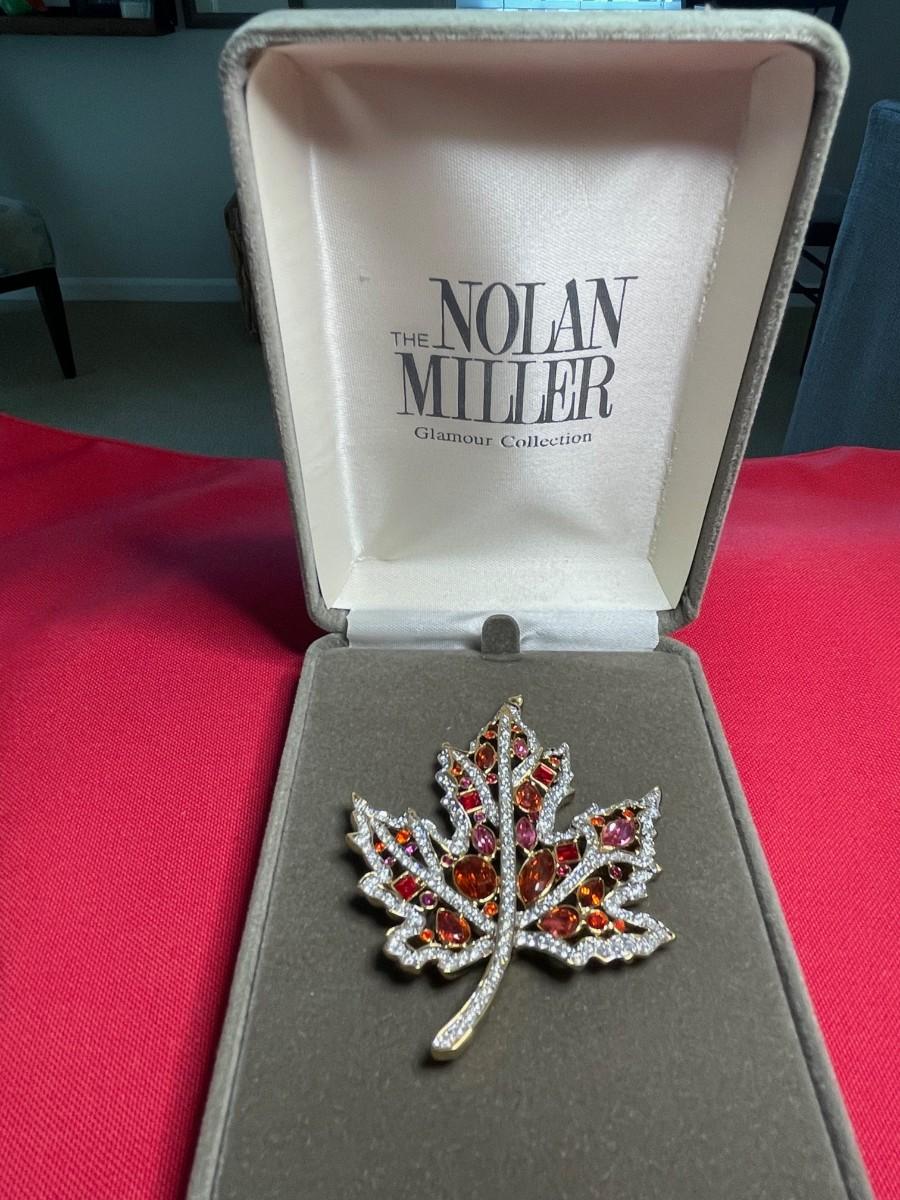 Nolan Miller jeweled Retired "Autumn Leaf" pin