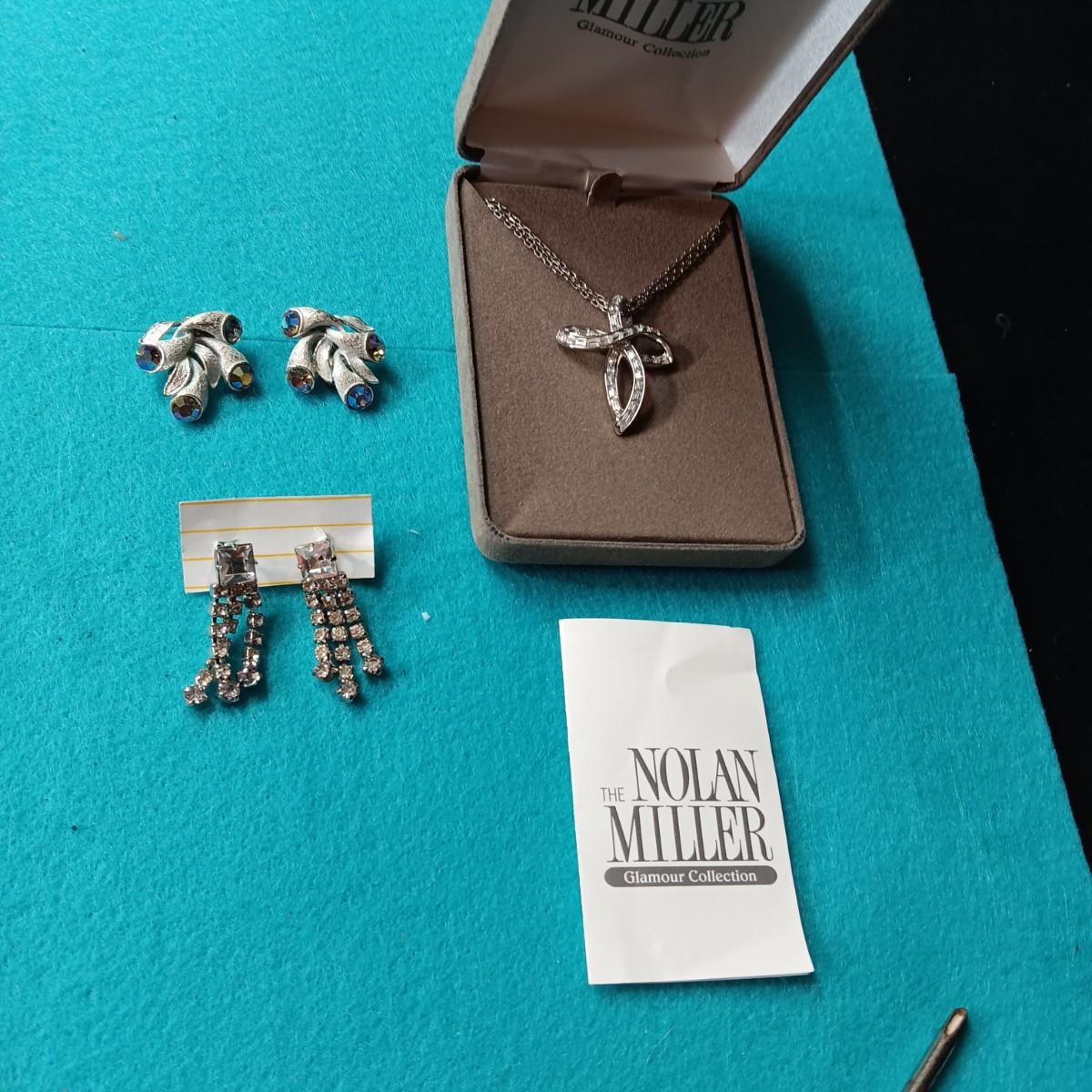 NOLAN MILLER RHINESTONE PENDANT AND CHAIN PLUS RHINESTONE EARRINGS