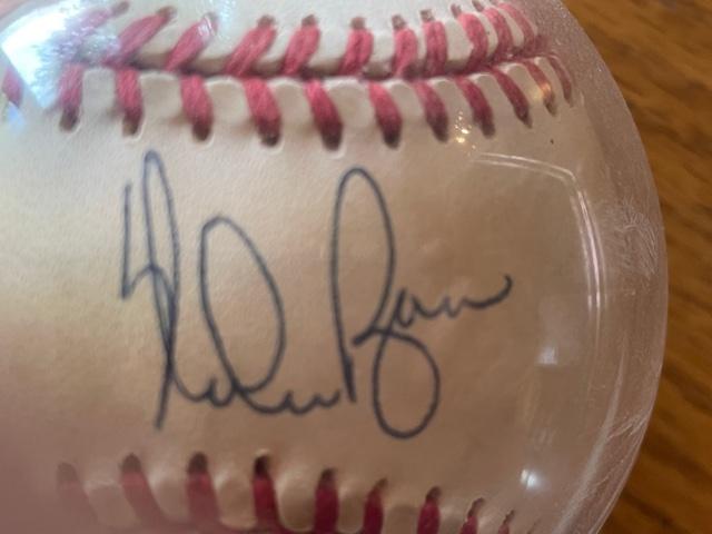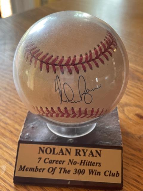 Nolan Ryan Autographed baseball. 7 time no-hitter, 300 win club sealed baseball sealed baseball holder trophy case