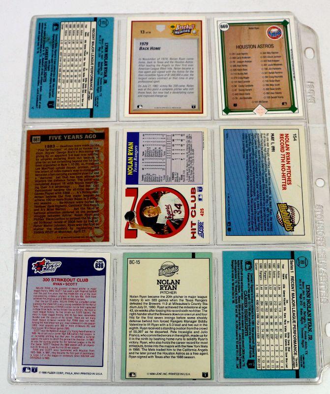 Nice set of 9 Baseball Cards featuring Baseball Star NOLAN RYAN