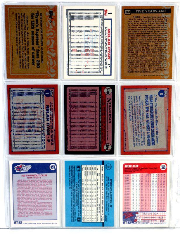 NOLAN RYAN BASEBALL CARDS SET OF 9 - EX/MINT