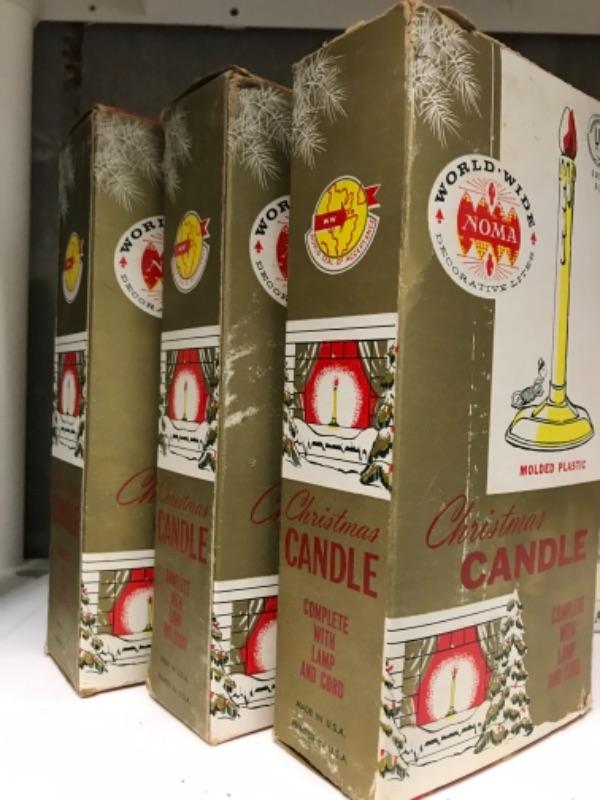 Noma Decorative Taper Lites. The winning bid buys all of them. One box has five tapers. Two boxes have three tapers. Three boxes have one taper. Great for the Farmhouse Christmas Look. As is condition, they did work, I had no way of testing them after being stored.