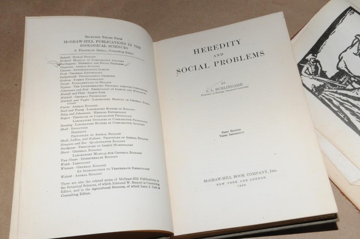 The Rise of the American Civilization by Charles & Mary Beard, New Edition published by The Macmillan Company. Heredity and Social Problems by LL Burlingame, published in 1940 by McGraw-Hill
