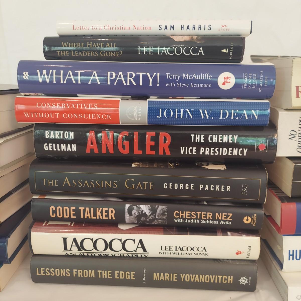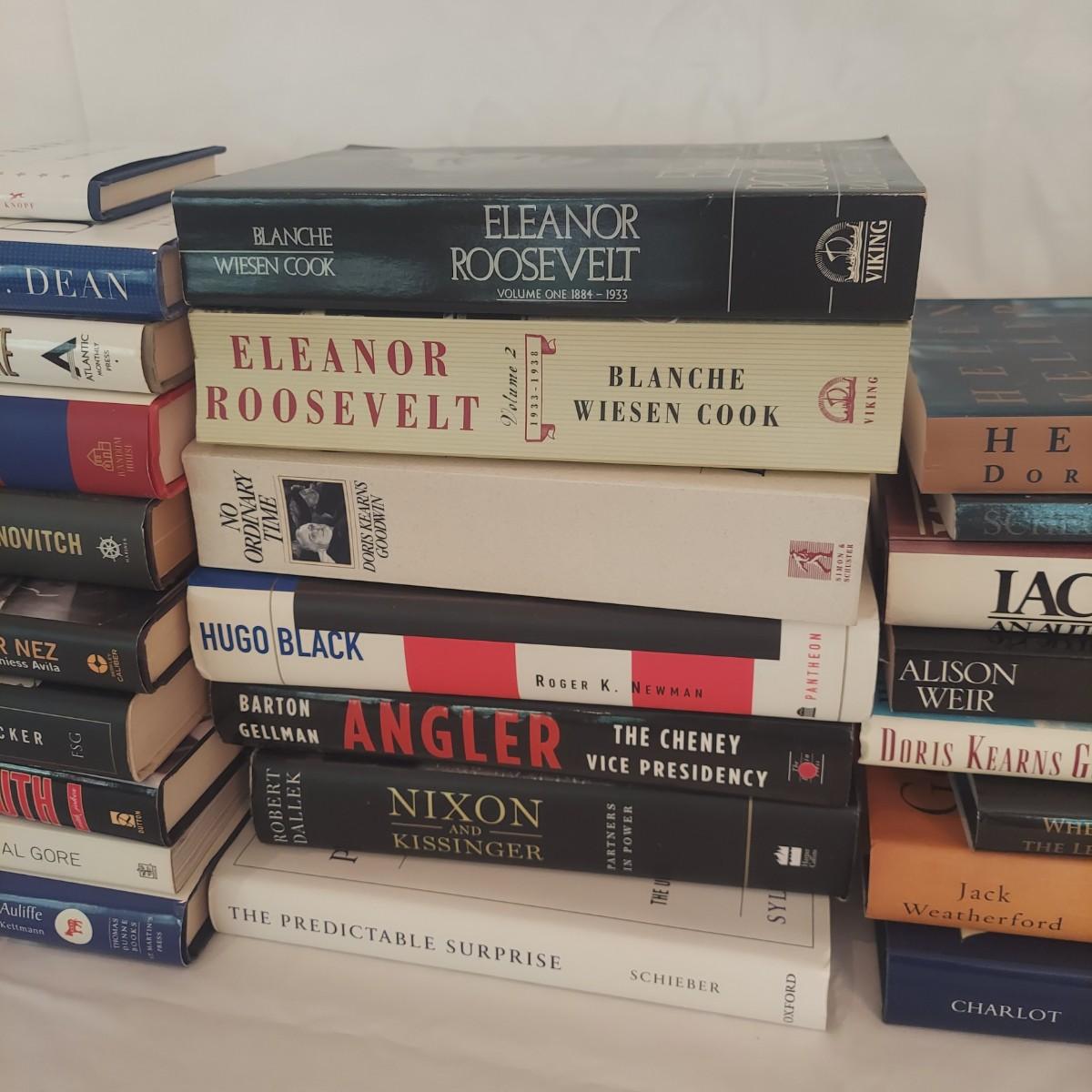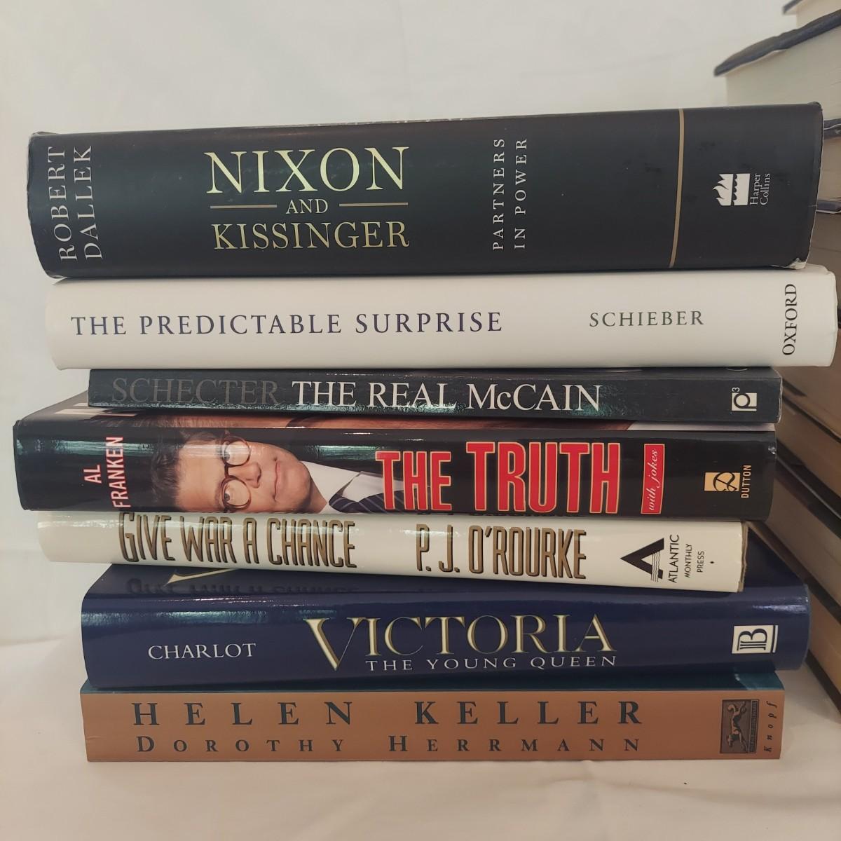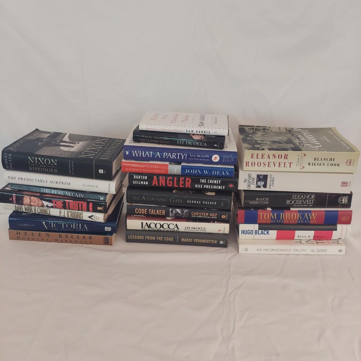 Lot Includes 20+ nonfiction hardback and paperback books including biographies and US political topics. Please see photos for details. Shipping available