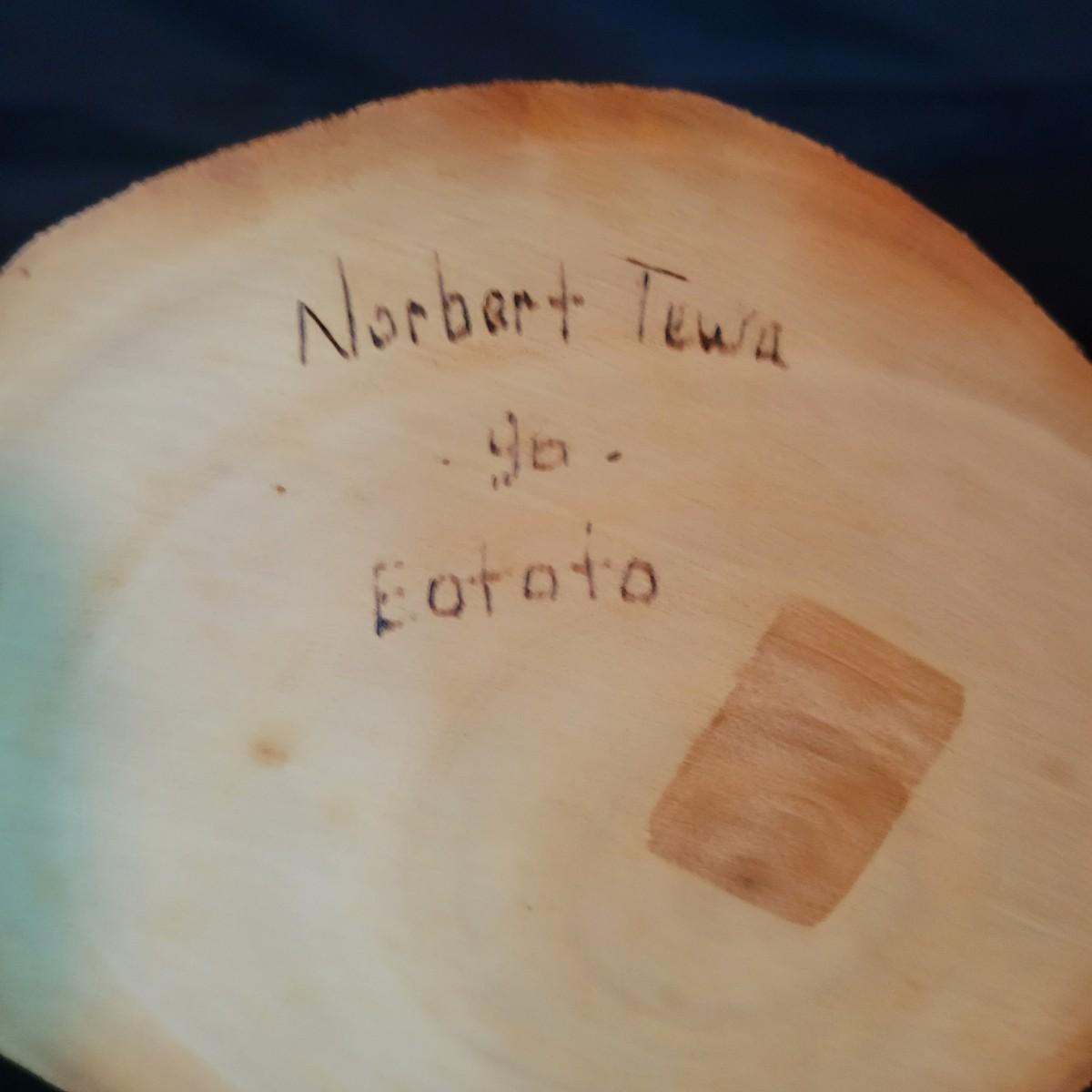 A Hopi carving titled "Eototo" and signed by Norbert Tewa. Carved of wood, it features beautiful detail and rich color. It measures approximately 5" x 4" x 10"H. Shipping available