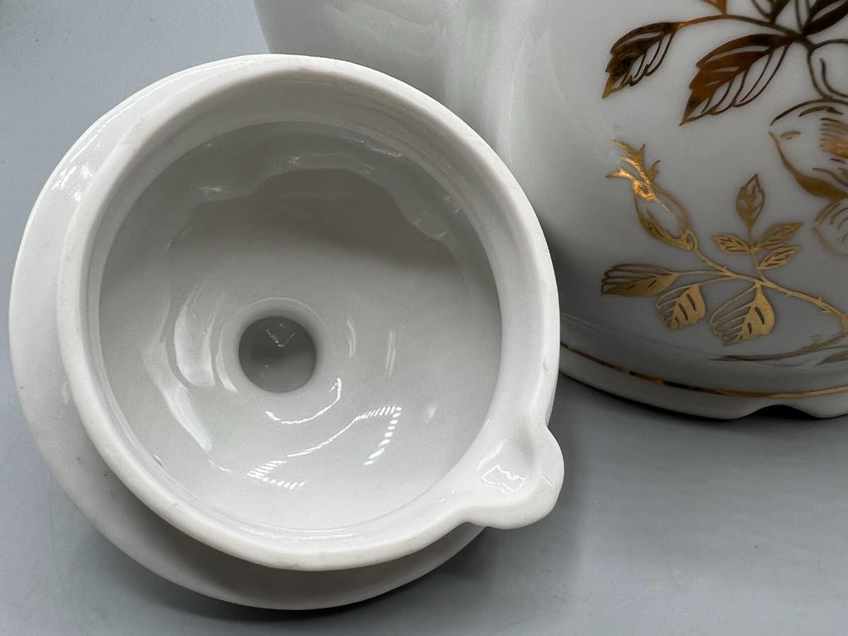There is no significant cracks or chips to the teapot and is in good useable or collectible condition. The music box works perfectly, check pictures for more details and for sizing.