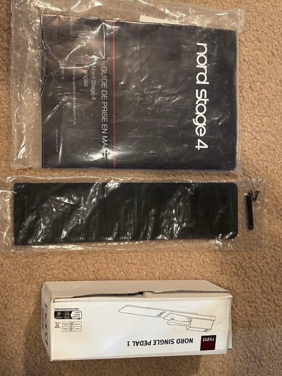 Just repacked item ,no issues ,comes with manual ,power cable 120v and Sustain Pedal , fully working condition ,we are Nord dealer. USA 48 states shipping only.