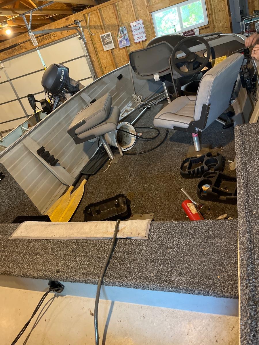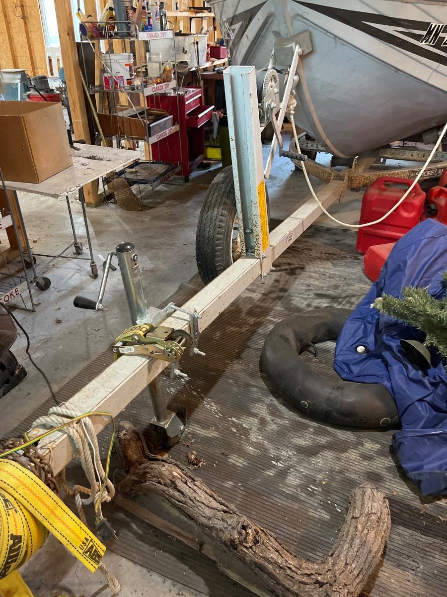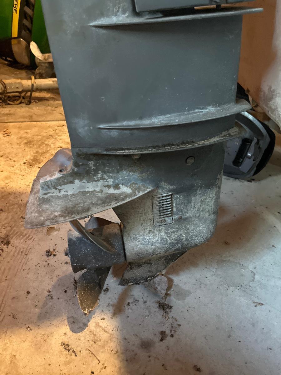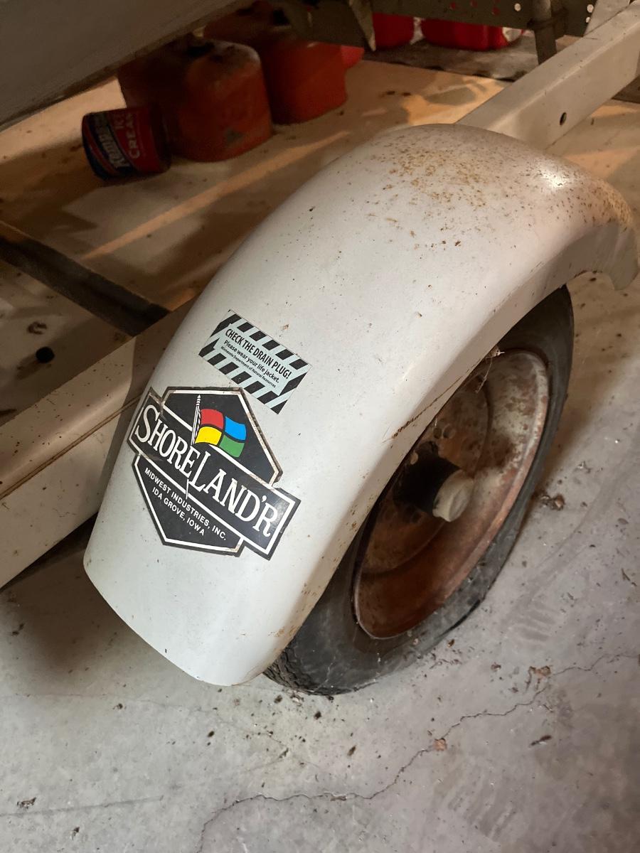 Unsure as to when it was last driven. Lower unit of motor is sitting on ground, trailer needs new tires.
