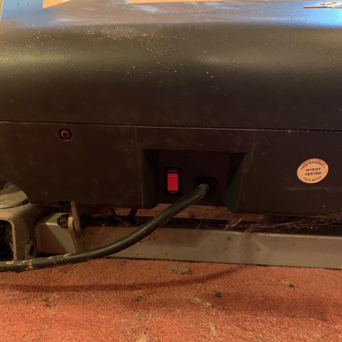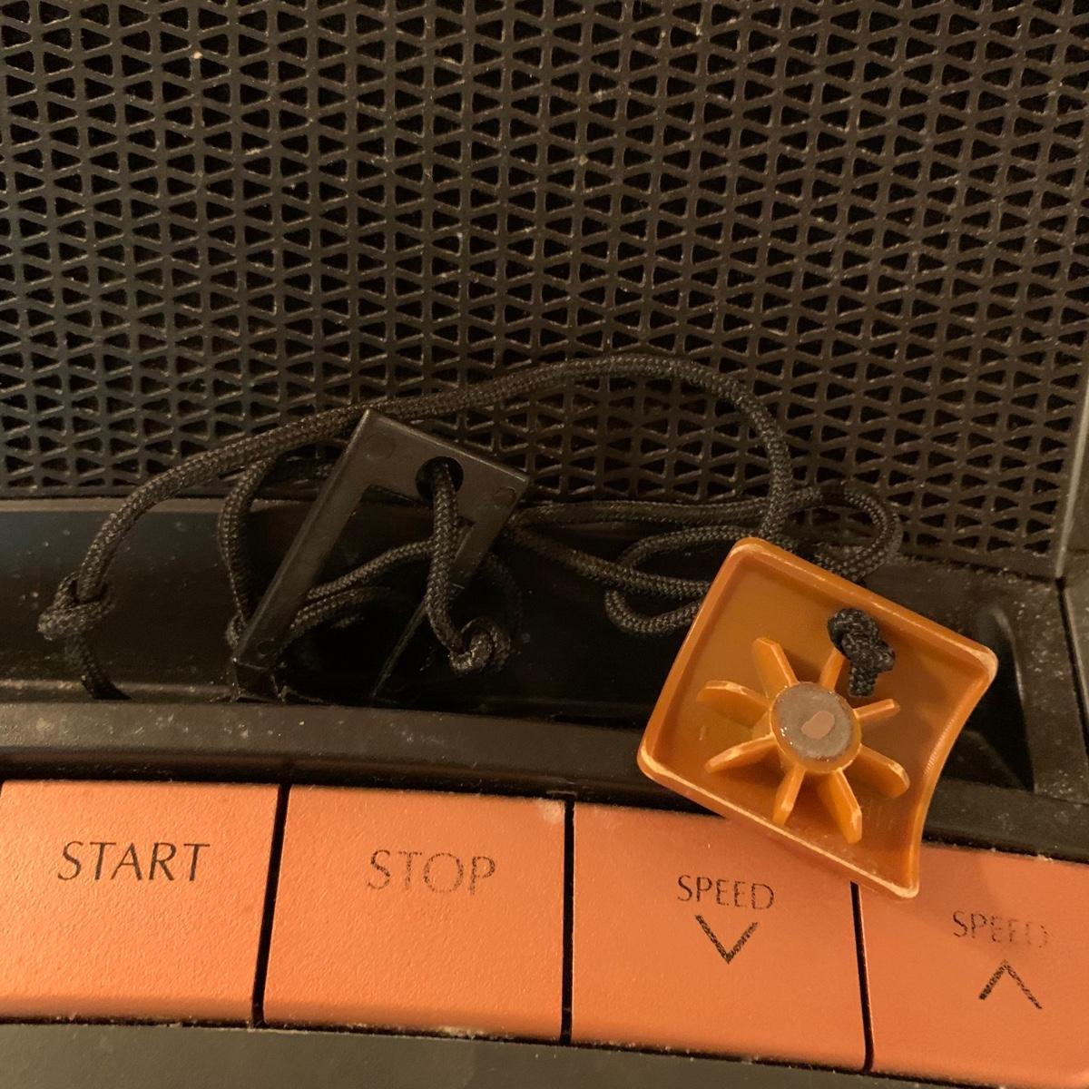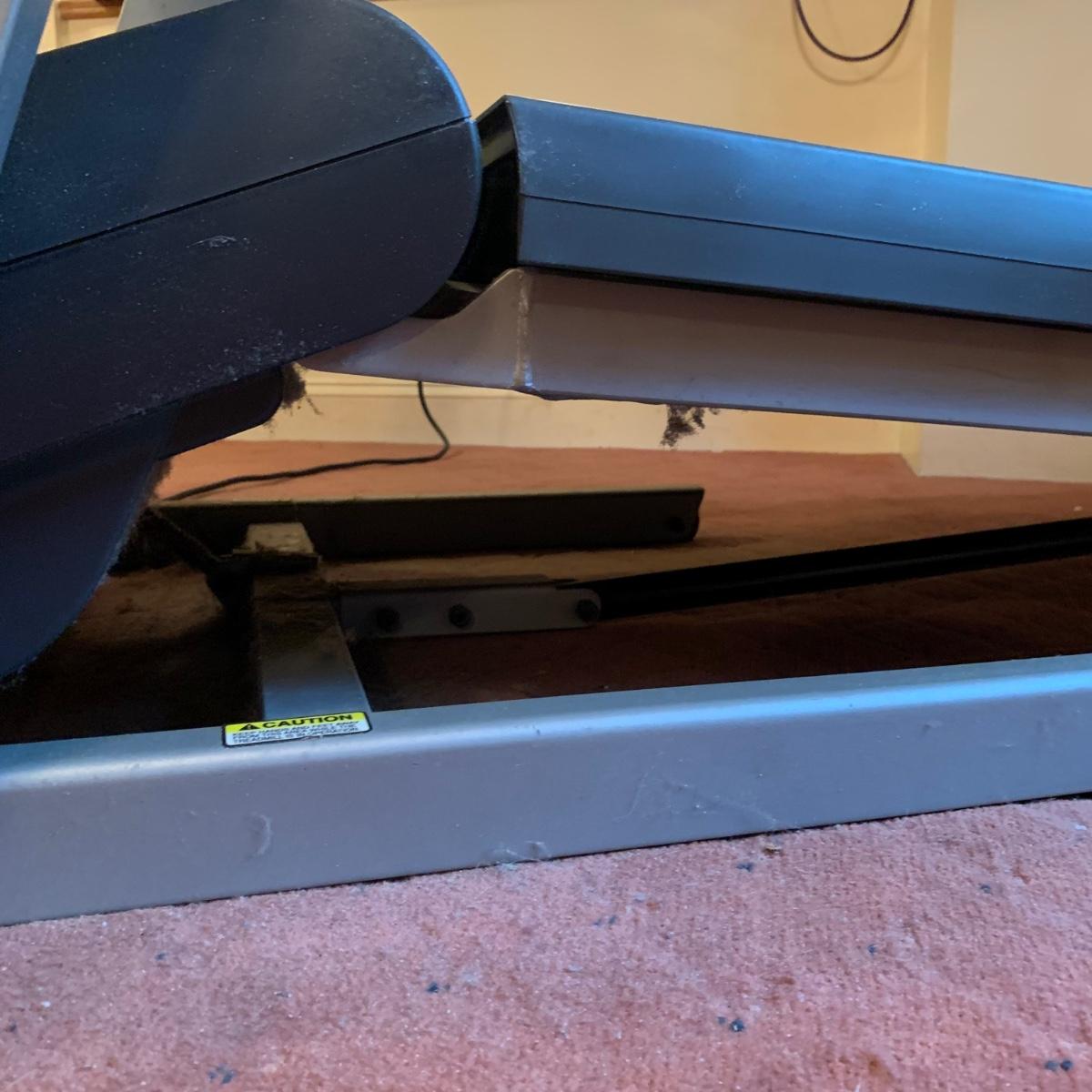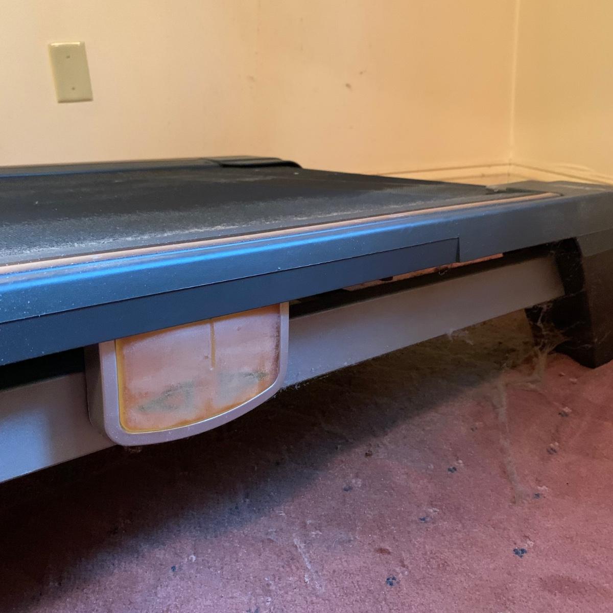 Nordic Track A2350 treadmill with universal dock for iPod. Model No. NTL07007.6. Treadmill functioned when tested. It is a bit worn from use and dusty, but otherwise in good condition. The machine turns on with a key that is included. The plastic clip attached to the key is broken. A user manual is included, as well as a wrench that should be helpful for disassembling the machine. The winning bidder will be responsible for disassembly and moving it up one flight of stairs. The treadmill measures approximately 72” x 34” x 54”.