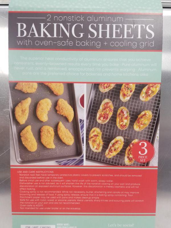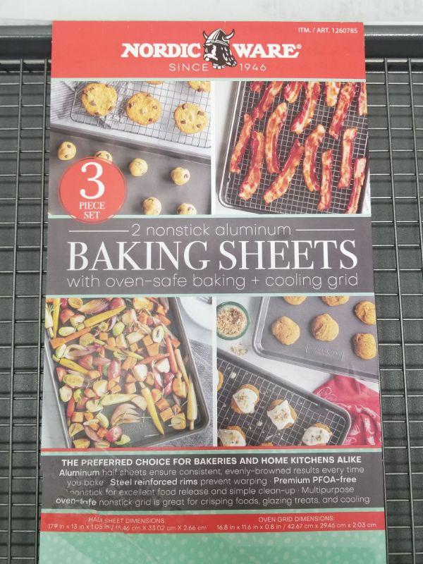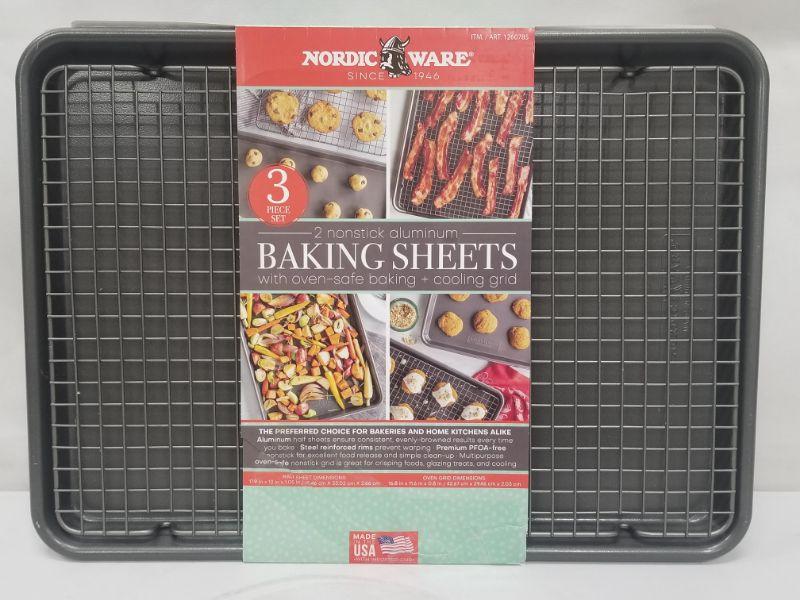 Nordic Ware 2 Nonstick Aluminum Baking Sheets with Oven-Safe Baking & Cooling Grid - New