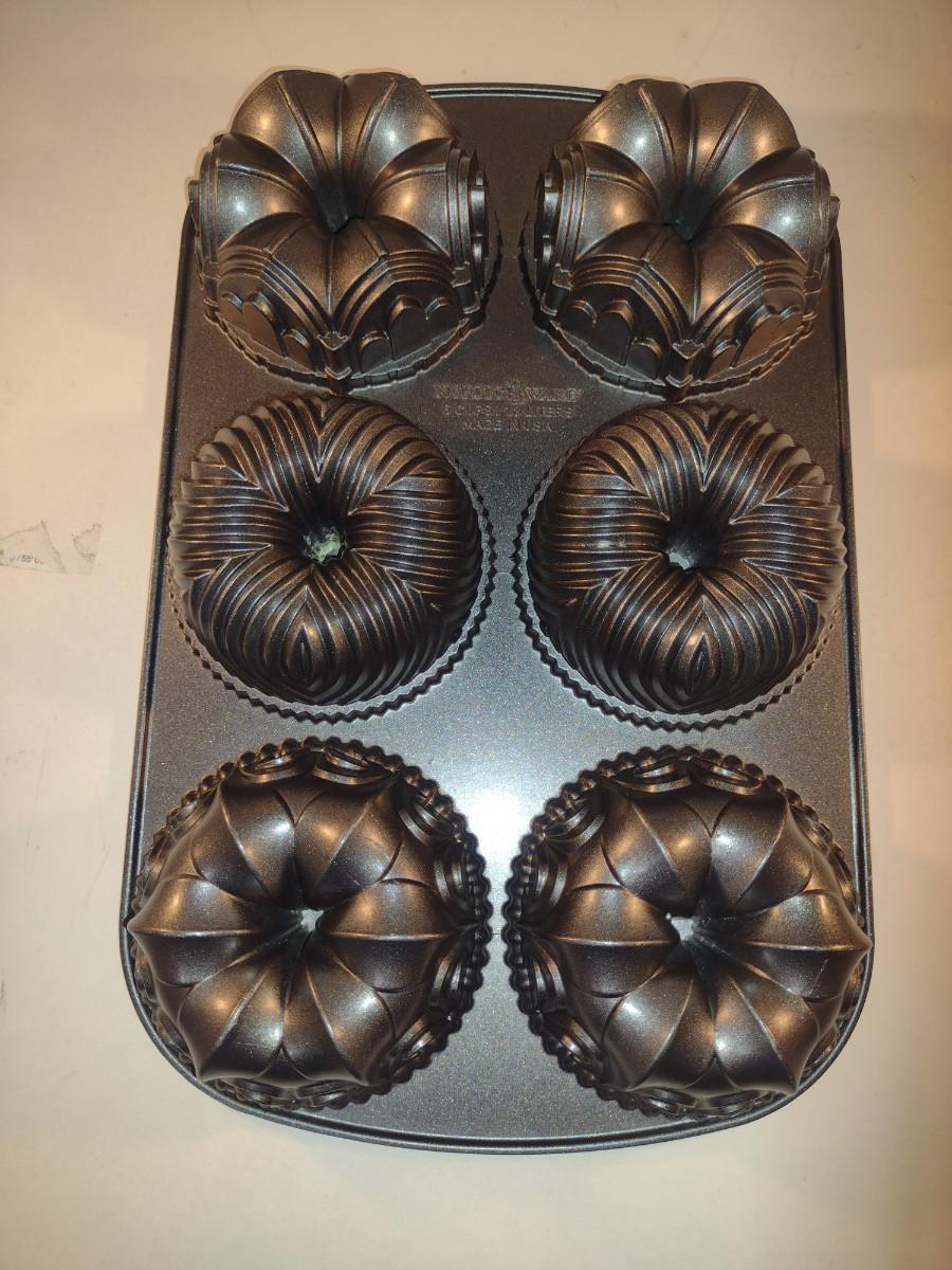 Nordic Ware Baby Bundt Six Cavity Pan- Three Assorted Designs