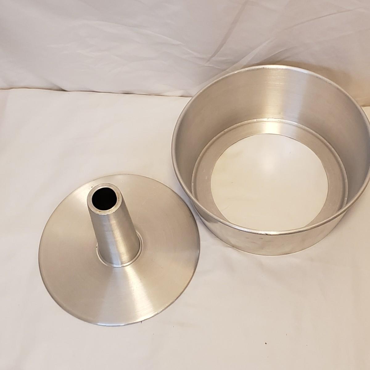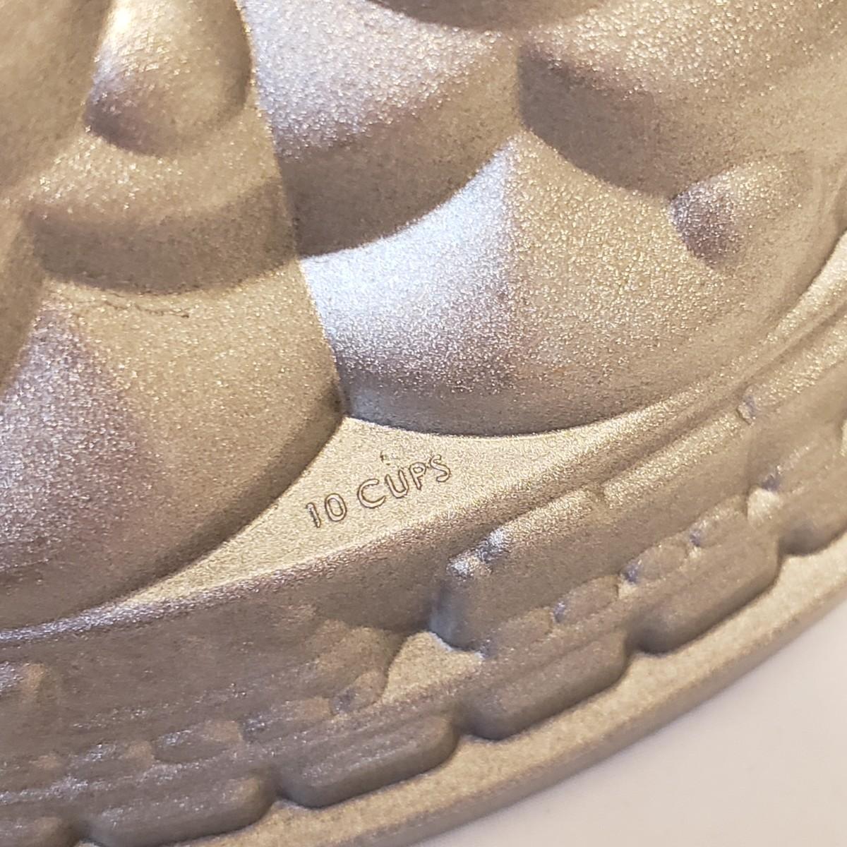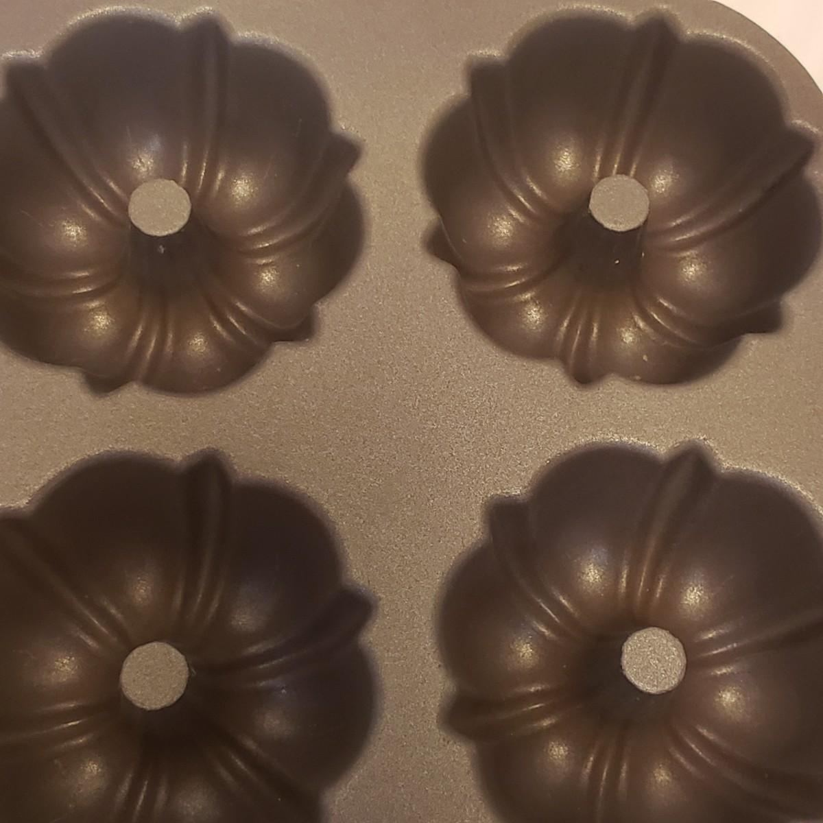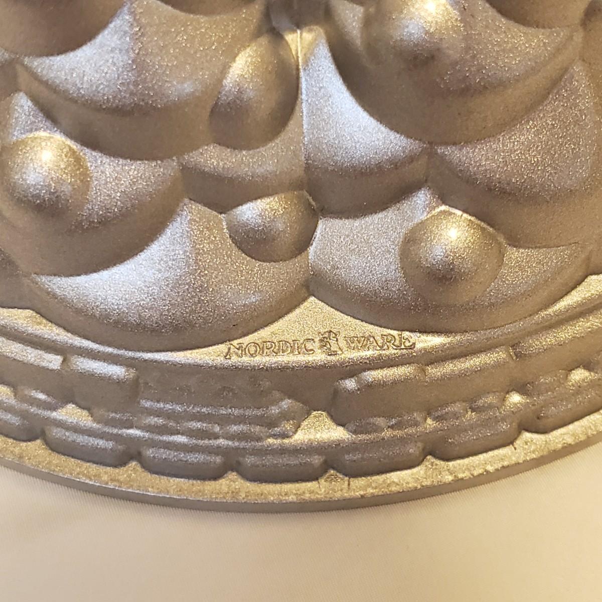 This 9 piece baking lot contains 4 bundt pans from Nordic Ware, two 10 cup Christmas themed pans and two 3 inch pans with 6 cakes in each. The 6 cake pans have ware on them, see pictures for details. The oldest pan also has ware, as seen in the pictures.