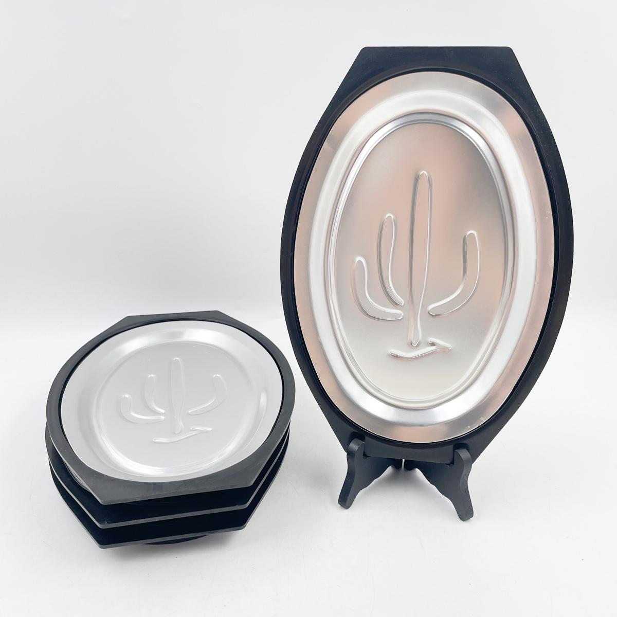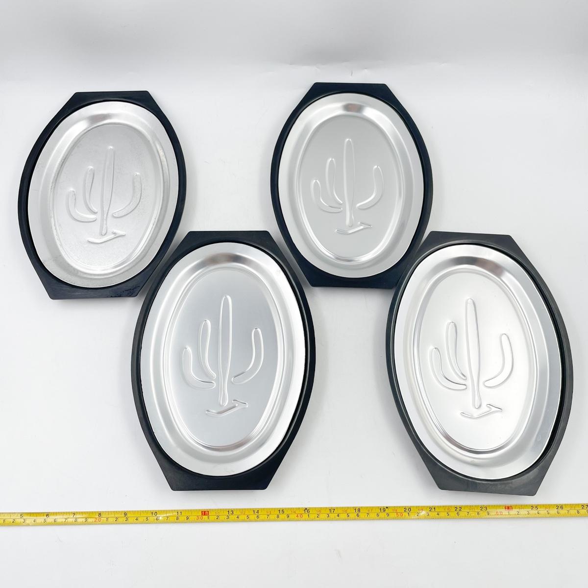 NORDICWARE “SERV-A-SIZZLE” ALUMINUM PLATTERS W/ INSULATED HOLDERS (4)