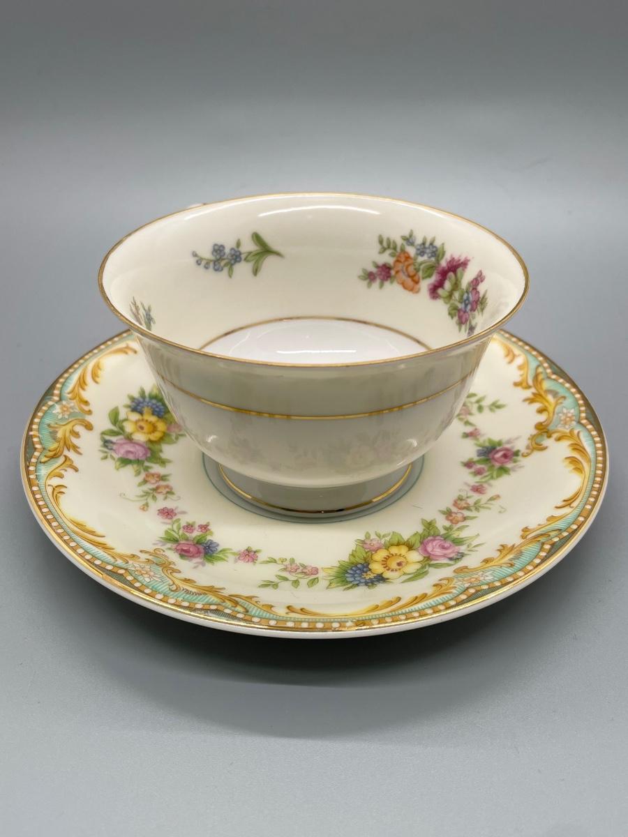 Noritaké China Floral Designed Teacup and Saucer Mismatched Set