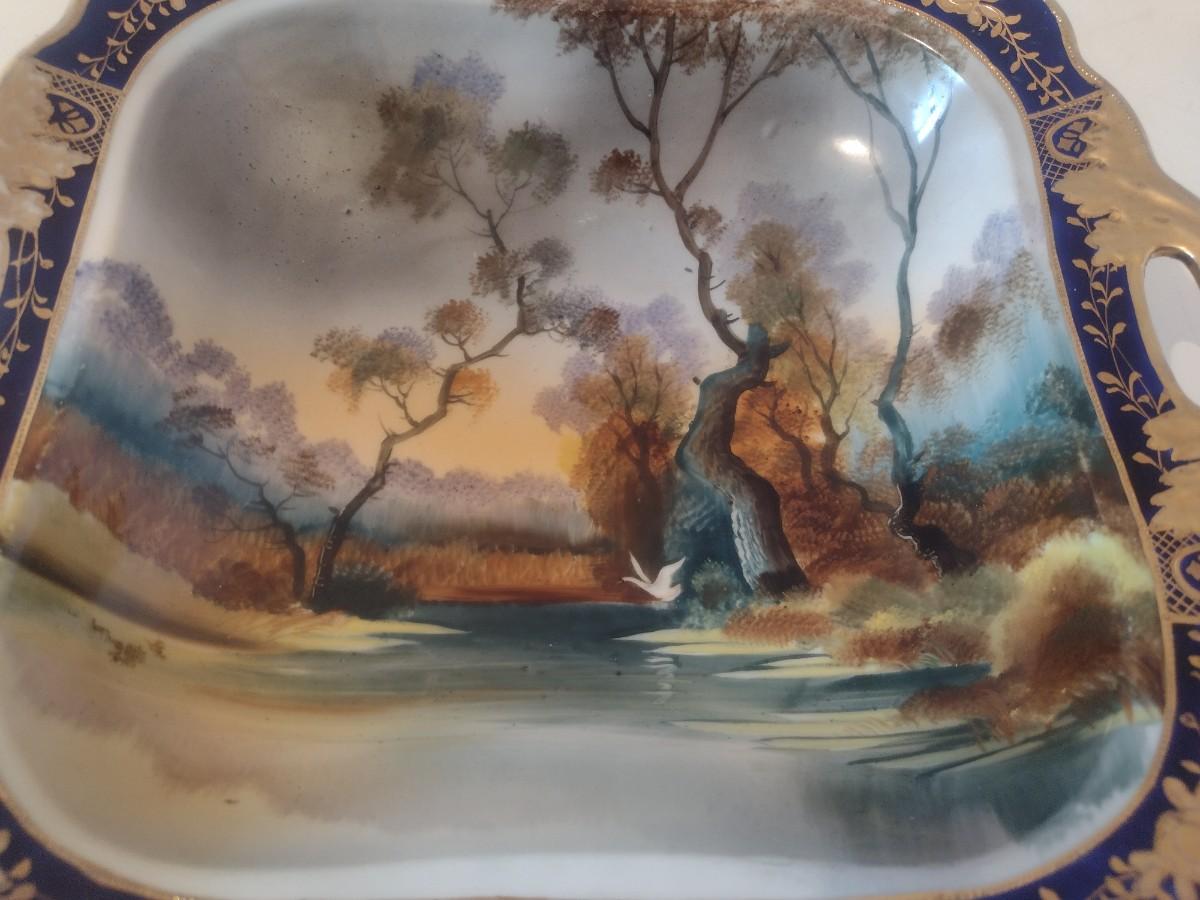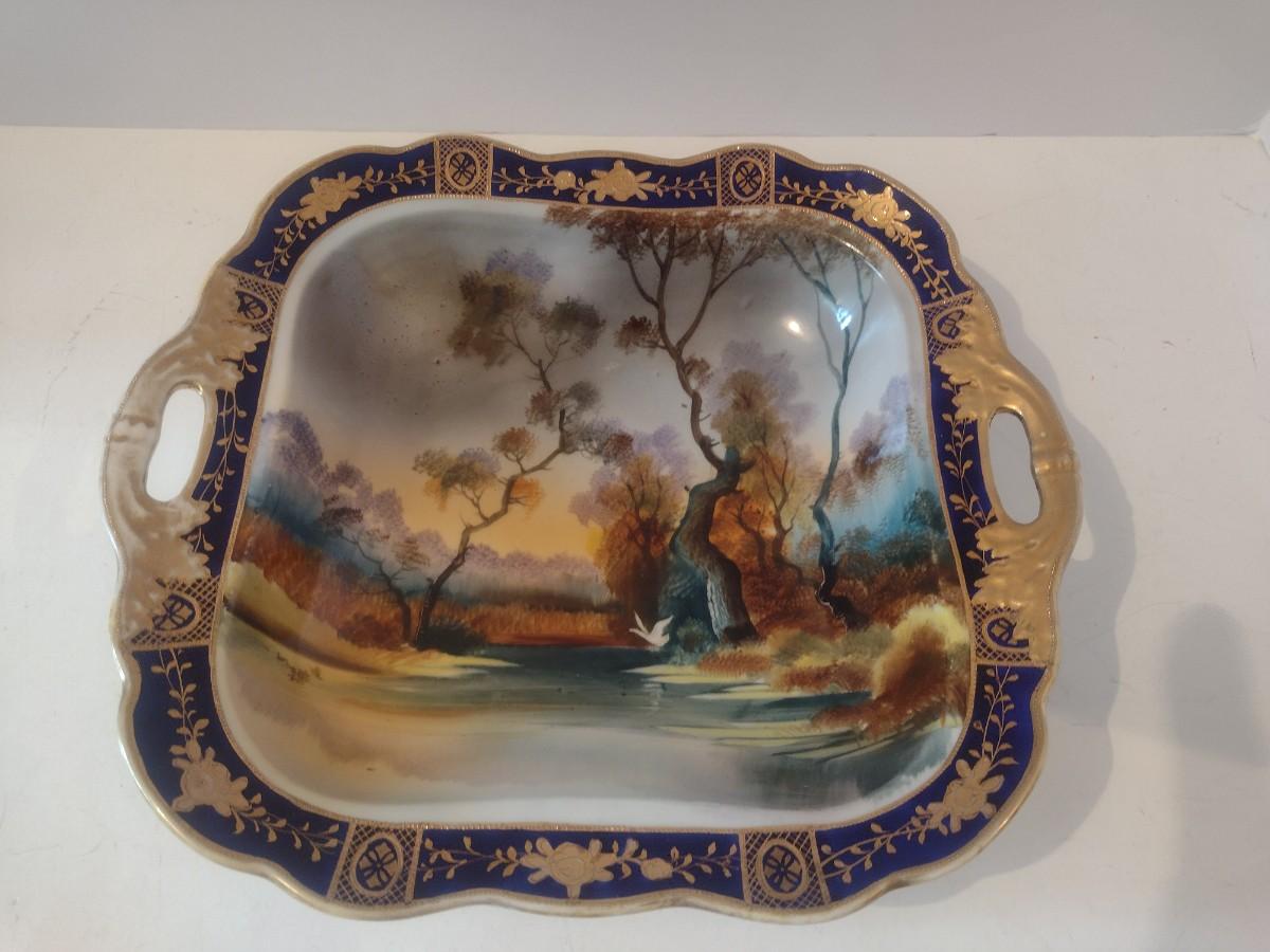 Antique Noritake Morimura Hand Painted Square Bowl with Handles