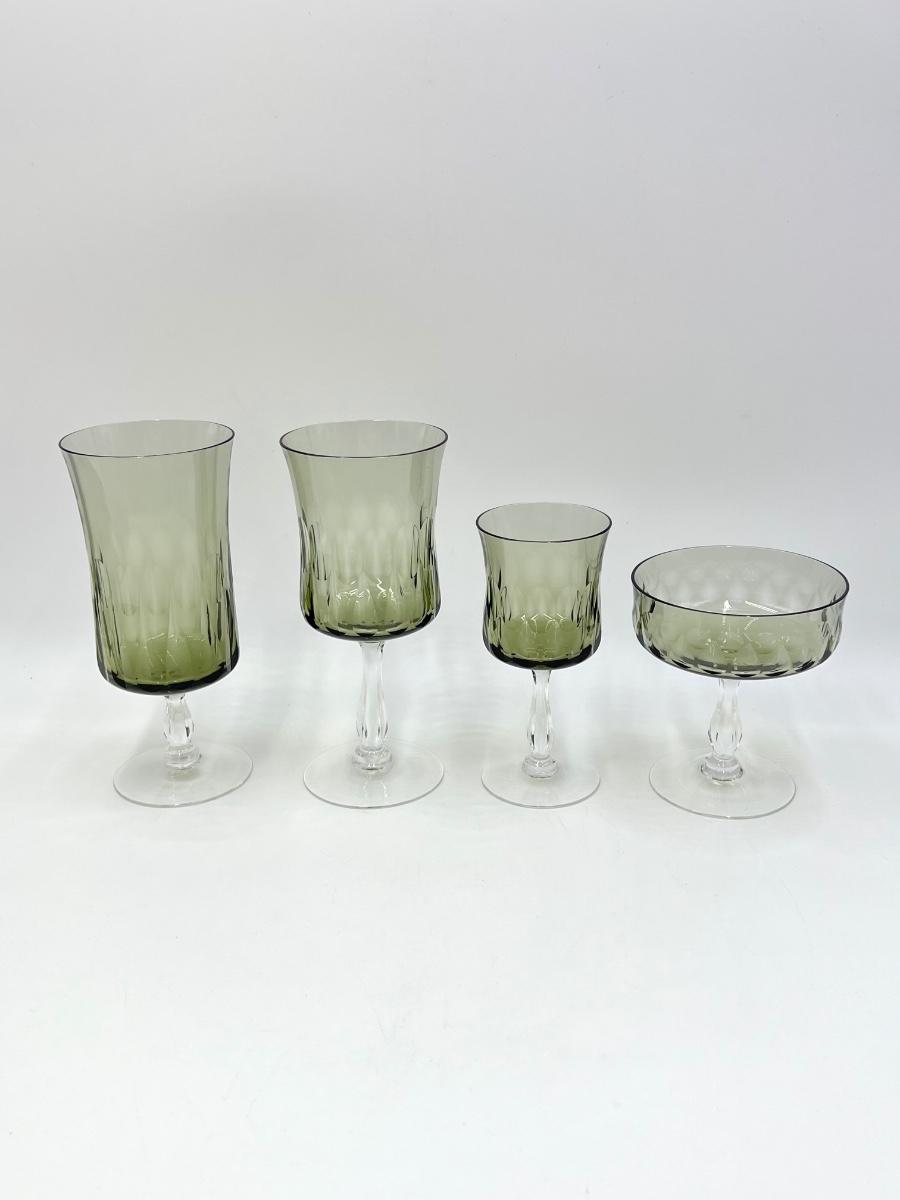 Includes: 6 water goblets ~ 6 wine glasses ~ 6 iced tea glasses ~ 6 champagne/ tall sherbet glasses