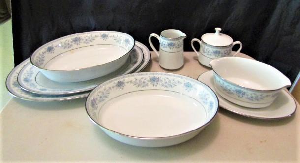 Noritake 'Blue Hill' Serving Pieces: 2 Veggie Bowls, 2 Platters, Gravy Boat, Sugar and Creamer