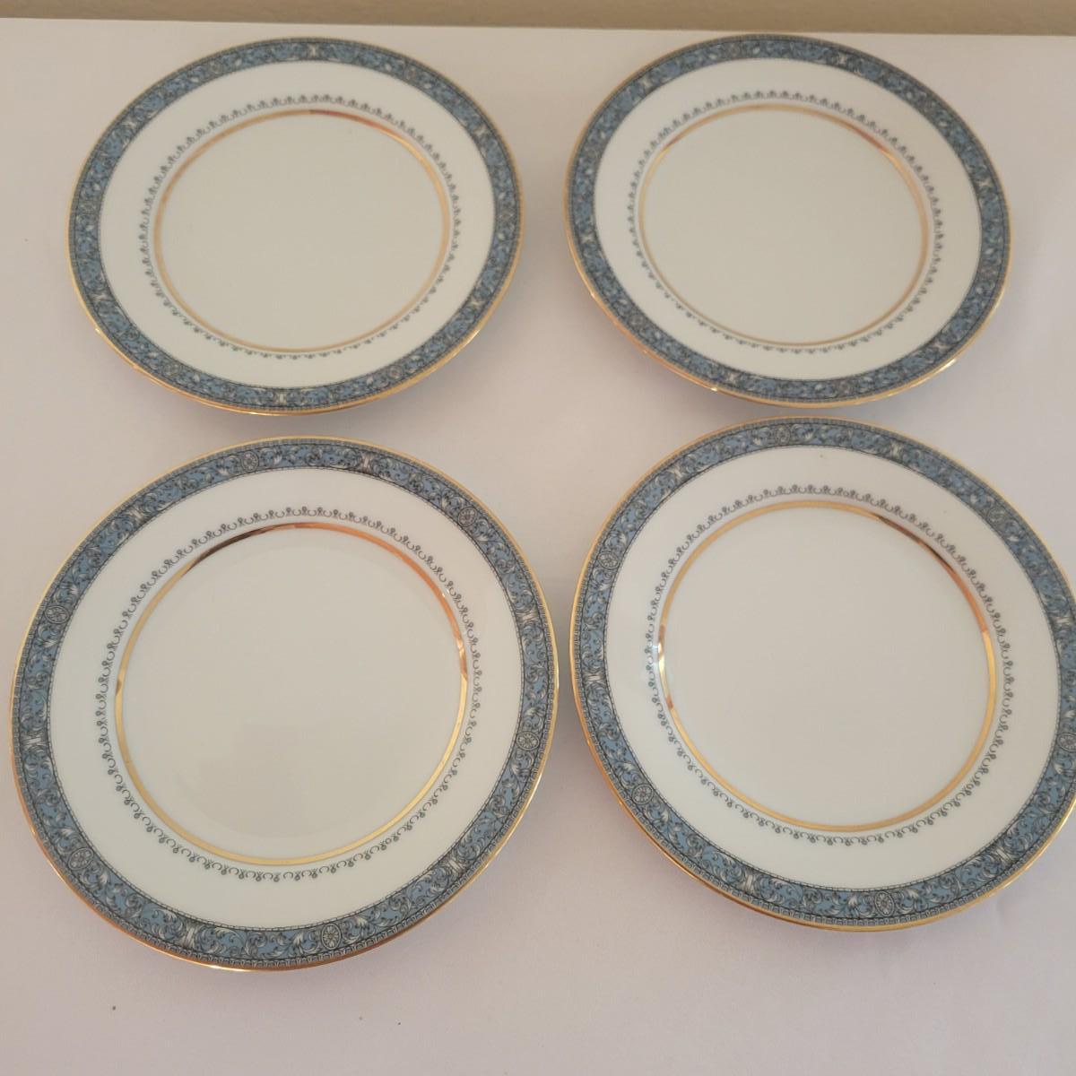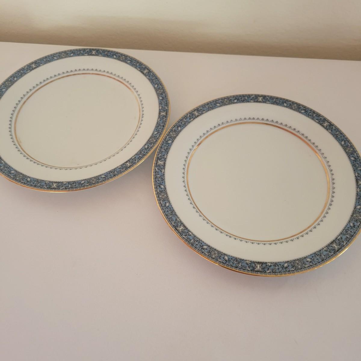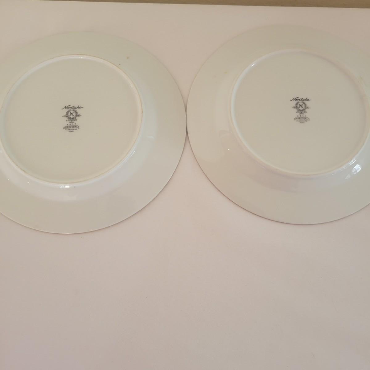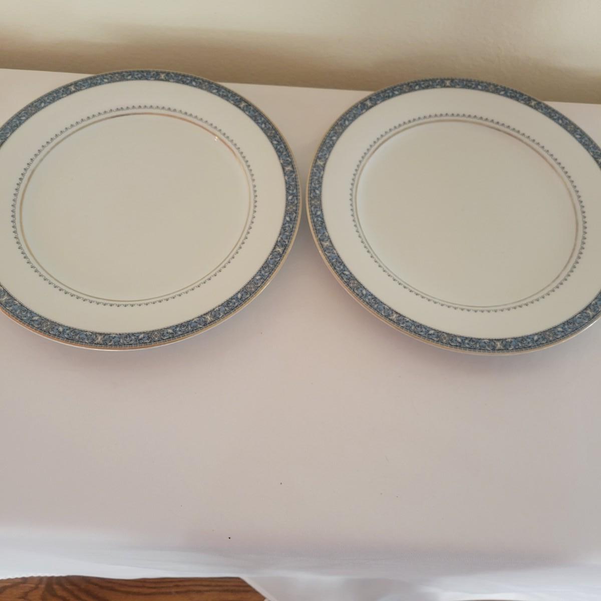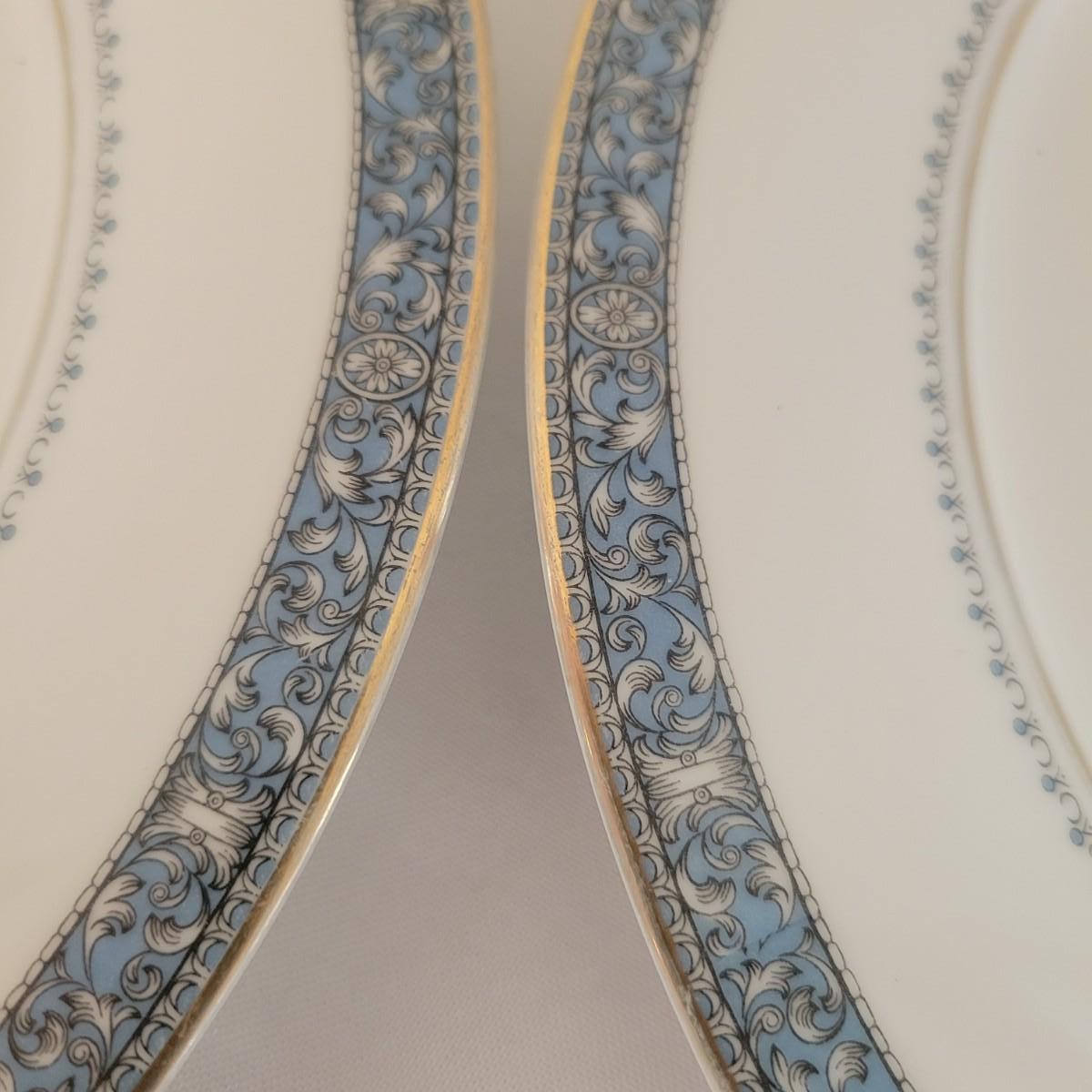 Noritake China in good condition that has one bowl with a chip in it. This china set is manufactured by Noritake and is harcourt pattern that is a blue scroll with gold accents. Included is a large serving dish that measures approximately 13.5" x 10.5" x 1.5". This collection also includes a lidded soup bowl, two dinner plates, two salad plates, two bowls and four bread plates. Shipping available. Shipping can be costly. We suggest calling our local UPS with dimensions and getting an estimate before bidding: (828) 252-6930.