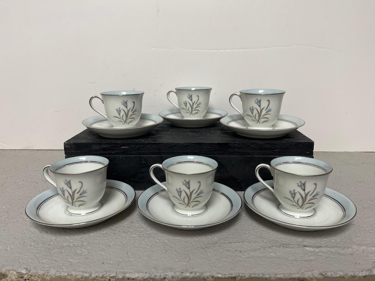 Sweet teapot, cream & sugar and six perfect cups and saucers in Noritake’s Bluebell pattern. Simply beautiful!